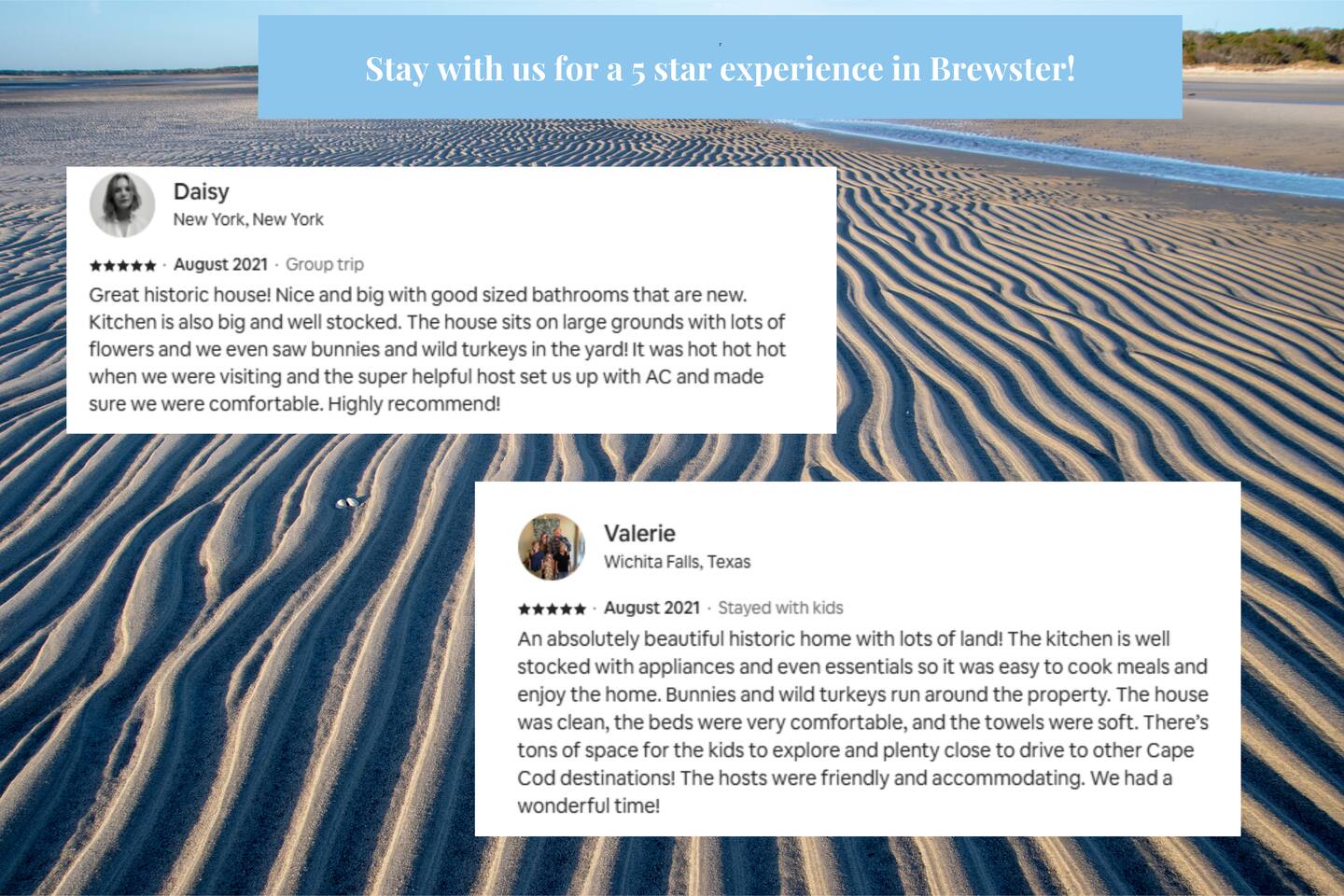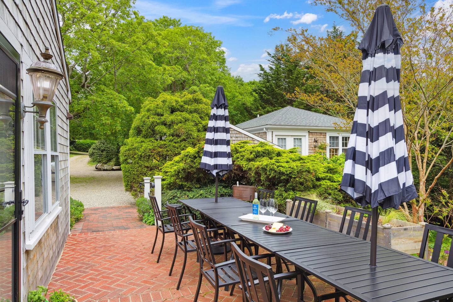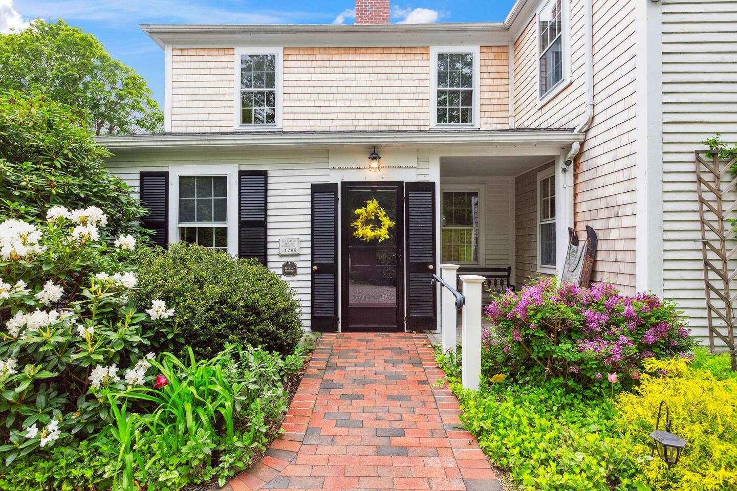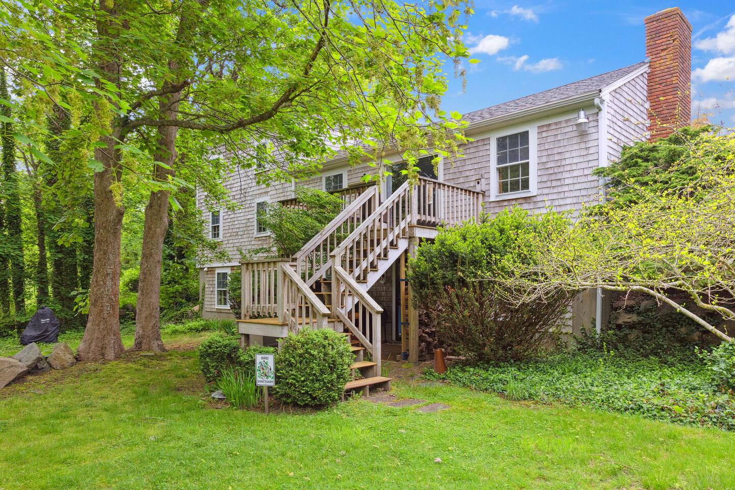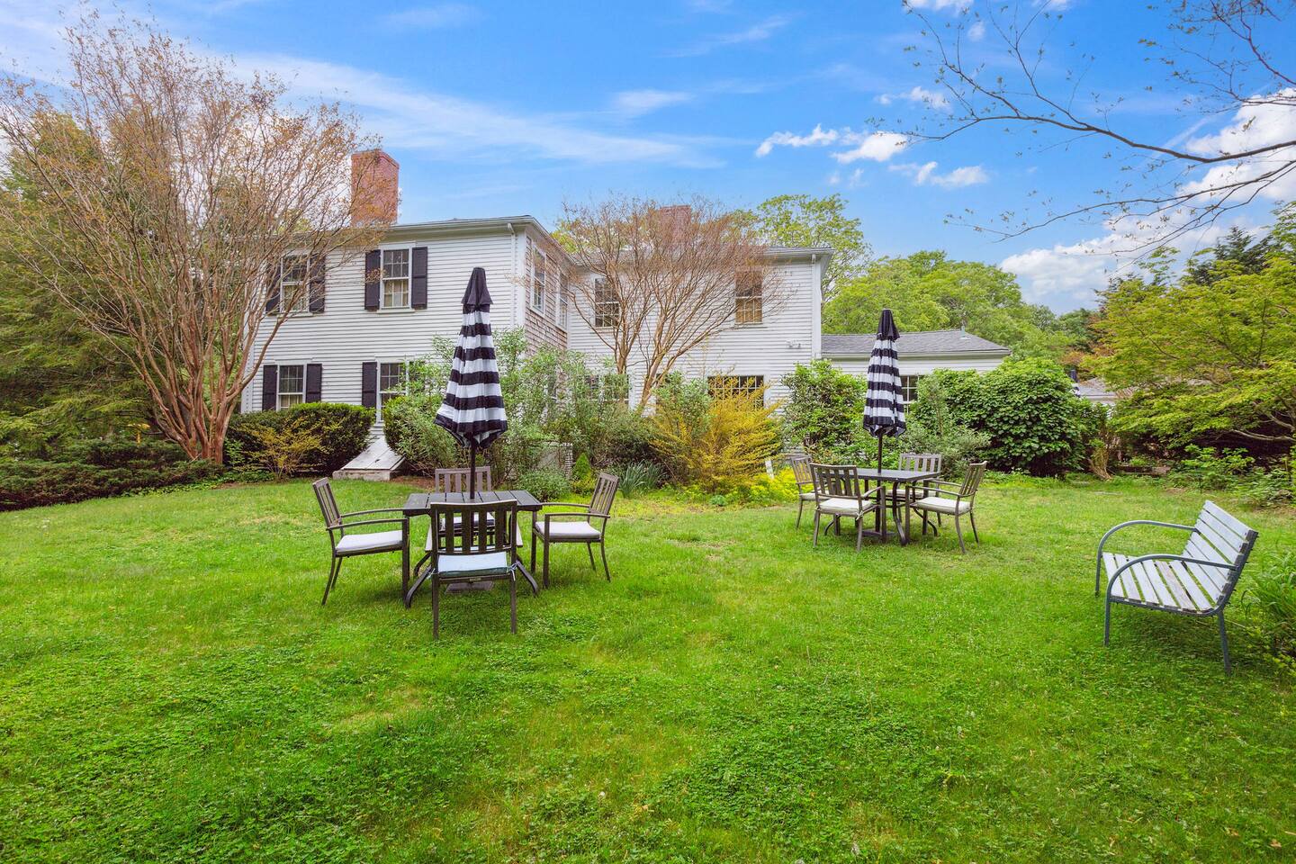 KEY FEATURES: ☀ Property Sleeps 10: 5 bedrooms, 2 kings, 1 queen, 2 full ☀ Bathrooms: 4 full bathrooms, 1 half bath ☀ Main House: Sea Captain's Estate - 4 bedrooms, 3.5 bathrooms ☀ Carriage House: In-law Suite: 1 full bed + kitchen, full bathroom & deck ☀ Heritage barn: Game Room with Ping Pong and tons of space to hangout with a seating area, large smart TV, games & deck ☀ Expansive grounds & gardens with tons of room to relax or play games ☀ Modern amenities and fully stocked kitchen ☀ Outdoor dining table & umbrella with seating for 10 guests ☀ Firepit with 12 Adironak chairs + 4 kids chair ☀ Outdoor lounge area with couch + chairs ☀ Butterfly garden with 2 tables & bench - seating for 10 guests ☀ Grill ☀ Outdoor shower ☀ Dedicated workspace ☀ Kid friendly amenities: changing table & high chair ☀ Pet friendly (pet fee: $150 per pet) ☀ Washer/Dryer ☀ Electric fireplace ☀ Beach chairs & towels ☀ Keypad entry (no keys!) ☀ 4 minutes to Paine's Creek Beach ☀ Walking distance to a cafe Here Are A Few Kind Words From Our Past Guests: "Great historic house! Nice and big with good sized bathrooms that are new. Kitchen is also big and well stocked. The house sits on large ground with lots of flowers and we even saw bunnies and wild turkeys in the yard! It was hot hot hot when we were visting and the super helpful host set us up with AC and made sure we were comfortable. Highly recommend!" - Daisy "An absolutely beautiful historic home with lots of land! The kitchen is well stocked with appliances and even essentials so it was easy to cook meals and enjoy the home. Bunnies and wild turkeys run around the property. The house was clean, the beds were very comfortable, and the towels were soft. There's tons of space for the kids to explore and plenty close to drive to other Cape Cod destinations! The hosts were friendly and accomodating. We had a wonderful time!" - Valerie ☆☆ MAIN HOUSE ☆☆ BEDROOMS - Bedroom #1: Full bed and ensuite - Bedroom #2: King bed (2 twins) and ensuite - Bedroom #3: King bed (2 twins) - Bedroom #4: Queen bed BATHROOMS - Bathroom #1: Half bath on the first floor - Bathroom #2: Full bathroom in the first floor bedroom - Bathroom #3: Full bathroom in second floor bedroom - Bathroom #4: Full bathroom off second floor hallway KITCHEN/LOUNGE - Well equipped kitchen with modern amenities, keurig & k-cups - Dining room with seating for 8 guests + high chair - Two living areas with cozy seating & electric fireplace OUTDOOR SPACE - Patio with dining table + umbrella with seating for 10 guests. - Cozy seating area with couch + chairs - Wood burning firepit with 12 adironak chairs + 4 kids chairs - Butterfly Garden with two tables, 8 chairs, 2 umbrellas, & bench - Expansive grounds & gardens - Outdoor shower COOLING - Standing Portable A/C units ☆☆ CARRIAGE HOUSE / IN LAW SUITE ☆☆ BED + BATH - Bedroom #5: Full bed - Bathroom #6: Full bathroom KITCHEN/LOUNGE - Well equipped kitchen with keurig + k-cups - Counter top with 2 chairs - Dining table + 2 chairs - Dedicated workspace with desk + chair - Smart TV - Two comfortable chairs OUTDOOR SPACE - Deck with 4 chairs, 2 tables & umbrella COOLING - A/C - Mini split ☆☆ HERITAGE BARN ☆☆ LOUNGE - Ping Pong Table - Keyboard - Seating area with couch + chairs - Table + chairs - 75" smart TV - Beverage cooler - Mini fridge OUTDOOR SPACE - Deck with seating area overlooking backyard BATH - Half bathroom COOLING - A/C - Mini split AVAILABILITY - Barn is available May-October. Winterized November-April. ☆☆ PROXIMITY TO BREWSTER BEACHES ☆☆ - Paines Creek Beach: 1 miles - Saint's Landing Beach: 1.1 miles - Mant's Landing (Robbins Hill Beach): 1.2 miles - Breakwater Beach: 2.0 miles - Ellis Landing Beach: 2.5 miles - Point of Rocks Landing Beach: 2.7 miles - Linnell Landing Beach: 3.0 miles - Crosby Landing Beach: 3.5 miles - Breakwater Beach: 1.7 miles - Mayflower Beach: 7 miles - Skaket Beach: 7.2 miles - Nauset Beach: 9.4 miles - Beach towels + chairs available for your use. ☆☆ NEARBY PLACES ☆☆ - Stony Brook Grist Mill and Museum: A historic site featuring a working grist mill and museum, offering insights into Brewster's past. - Cape Cod Museum of Natural History: A museum focusing on the natural history and archaeology of Cape Cod, with exhibits and walking trails. - Nickerson State Park: A 1,900-acre state park offering hiking trails, freshwater ponds, and camping facilities. - The Brewster Fish House: An upscale seafood restaurant known for its creative dishes served in a charming cottage setting. - Cafe Alfresco: A cozy spot offering a variety of breakfast and lunch options, including sandwiches, salads, and coffee. - Spinnaker Restaurant: A dining establishment offering a unique fusion of Italian-inspired cuisine with a focus on fresh, local ingredients. - Ocean Terrace at Ocean Edge Resort: A dining venue offering elevated New England classics with panoramic views of Cape Cod Bay. - The Kitchen Cafe: A local eatery known for its breakfast and lunch offerings, emphasizing fresh and locally sourced ingredients. - Freeman's Grill: A casual dining spot offering a variety of American cuisine, including burgers and seafood. - The Island Blue Crab: A seafood restaurant offering a variety of dishes with an emphasis on fresh, local seafood. - Drummer Boy Park: A park featuring walking trails, picnic areas, playground, and historic structures like an 18th-century windmill and blacksmith shop. ★★★ Book Today & Let Us Take Care Of You In Brewster! ★★★