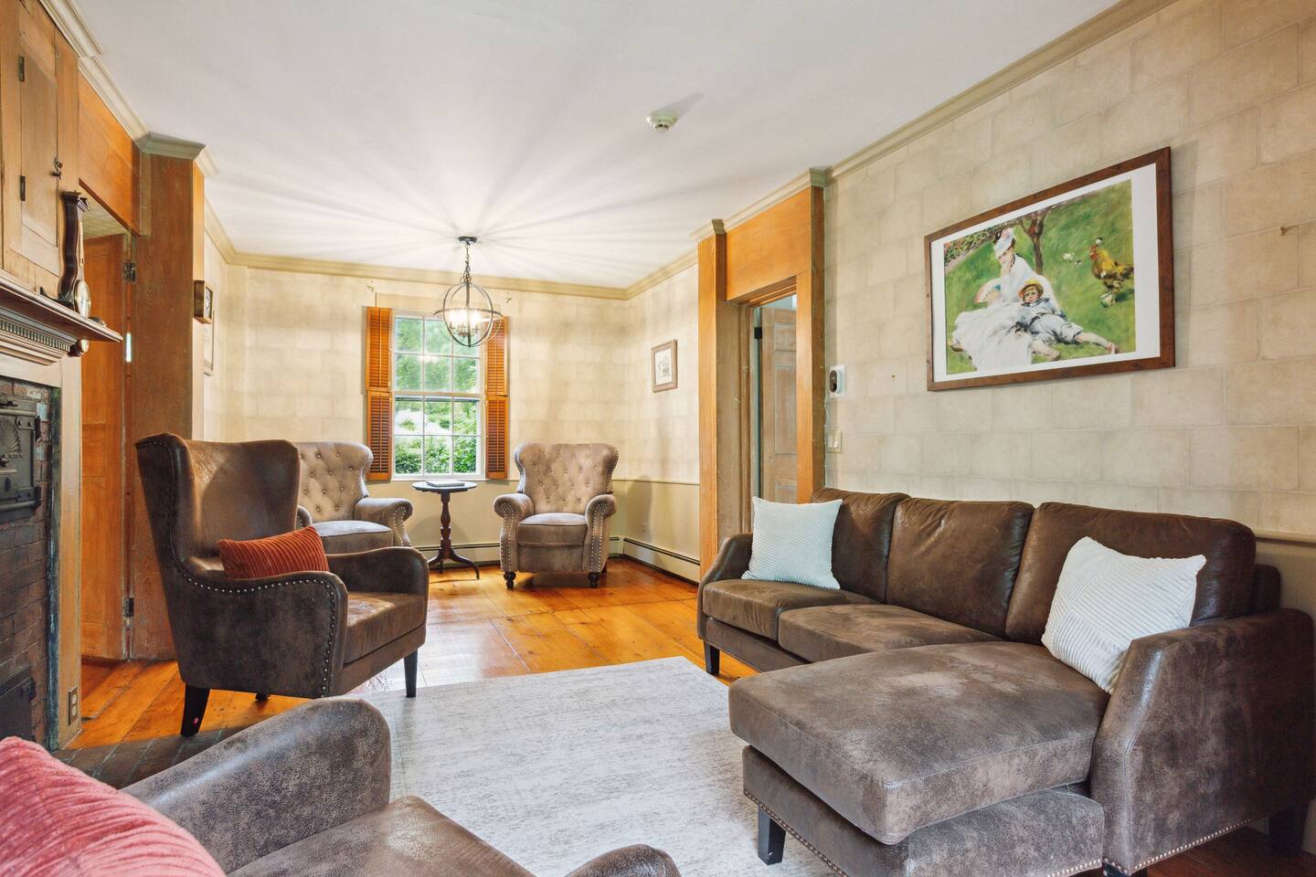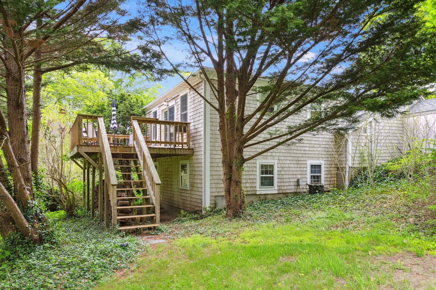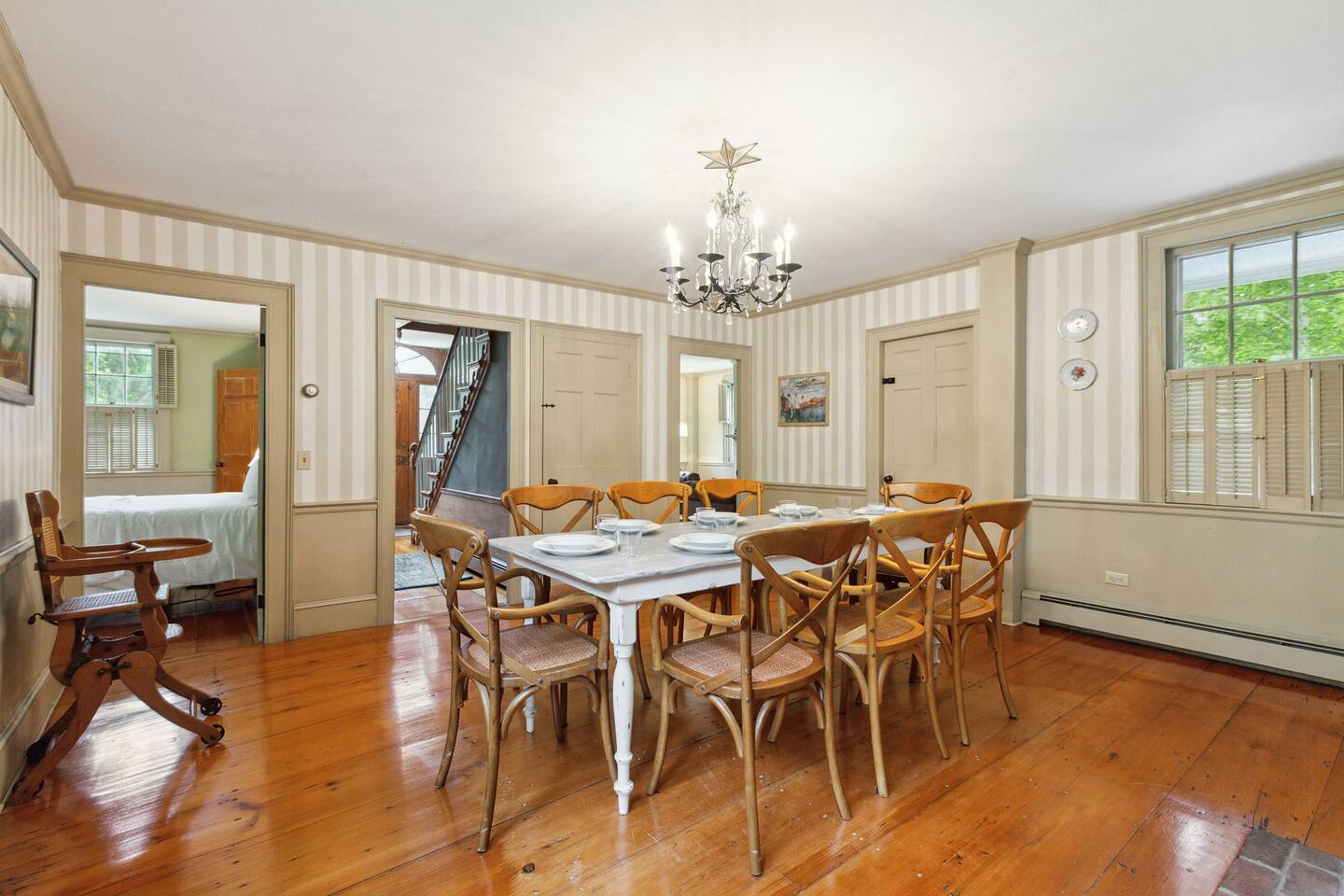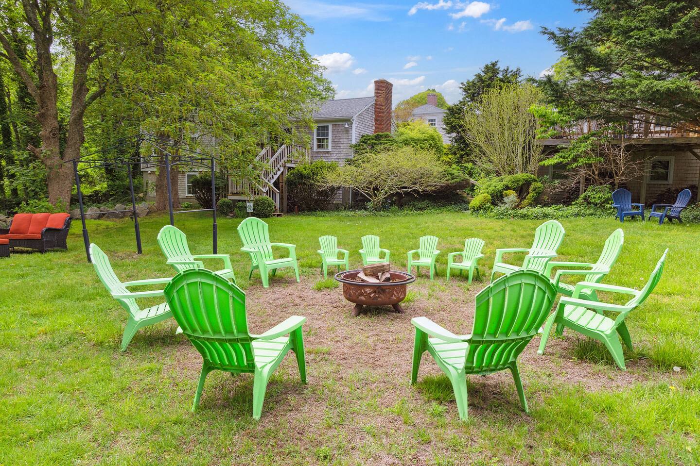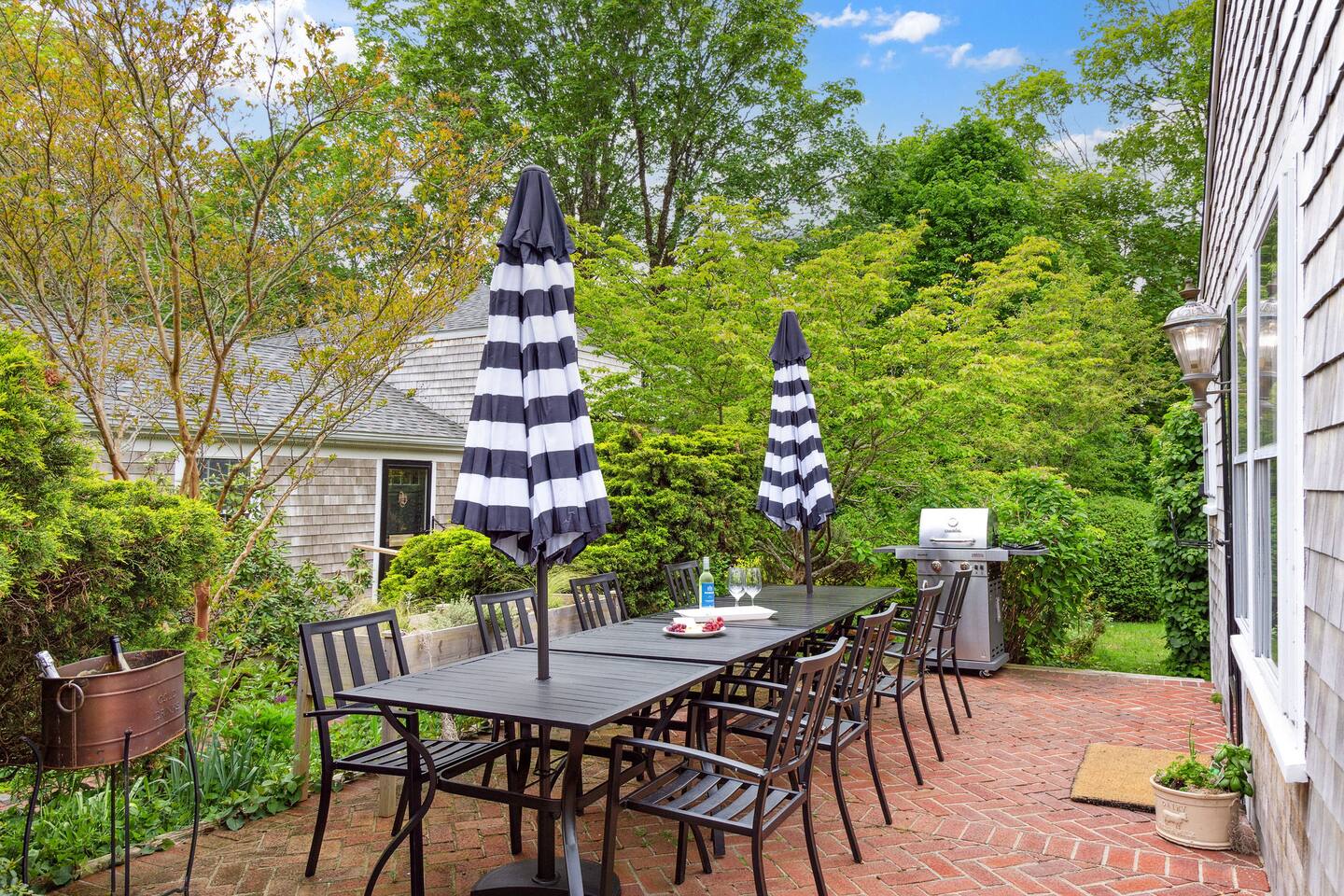 KEY FEATURES: ☀ Property Sleeps 10: 5 bedrooms, 2 kings, 1 queen, 2 full ☀ Bathrooms: 4 full bathrooms, 1 half bath ☀ Main House: Sea Captain's Estate - 4 bedrooms, 3.5 bathrooms ☀ Carriage House: In-law Suite: 1 full bed + kitchen, full bathroom & deck ☀ Heritage barn: Game Room with Ping Pong and tons of space to hangout with a seating area, large smart TV, games & deck ☀ Expansive grounds & gardens with tons of room to relax or play games ☀ Modern amenities and fully stocked kitchen ☀ Outdoor dining table & umbrella with seating for 10 guests ☀ Firepit with 12 Adironak chairs + 4 kids chair ☀ Outdoor lounge area with couch + chairs ☀ Butterfly garden with 2 tables & bench - seating for 10 guests ☀ Grill ☀ Outdoor shower ☀ Dedicated workspace ☀ Kid friendly amenities: changing table & high chair ☀ Pet friendly (pet fee: $150 per pet) ☀ Washer/Dryer ☀ Electric fireplace ☀ Beach chairs & towels ☀ Keypad entry (no keys!) ☀ 4 minutes to Paine's Creek Beach ☀ Walking distance to a cafe Here Are A Few Kind Words From Our Past Guests: "Great historic house! Nice and big with good sized bathrooms that are new. Kitchen is also big and well stocked. The house sits on large ground with lots of flowers and we even saw bunnies and wild turkeys in the yard! It was hot hot hot when we were visting and the super helpful host set us up with AC and made sure we were comfortable. Highly recommend!" - Daisy "An absolutely beautiful historic home with lots of land! The kitchen is well stocked with appliances and even essentials so it was easy to cook meals and enjoy the home. Bunnies and wild turkeys run around the property. The house was clean, the beds were very comfortable, and the towels were soft. There's tons of space for the kids to explore and plenty close to drive to other Cape Cod destinations! The hosts were friendly and accomodating. We had a wonderful time!" - Valerie ☆☆ MAIN HOUSE ☆☆ BEDROOMS - Bedroom #1: Full bed and ensuite - Bedroom #2: King bed (2 twins) and ensuite - Bedroom #3: King bed (2 twins) - Bedroom #4: Queen bed BATHROOMS - Bathroom #1: Half bath on the first floor - Bathroom #2: Full bathroom in the first floor bedroom - Bathroom #3: Full bathroom in second floor bedroom - Bathroom #4: Full bathroom off second floor hallway KITCHEN/LOUNGE - Well equipped kitchen with modern amenities, keurig & k-cups - Dining room with seating for 8 guests + high chair - Two living areas with cozy seating & electric fireplace OUTDOOR SPACE - Patio with dining table + umbrella with seating for 10 guests. - Cozy seating area with couch + chairs - Wood burning firepit with 12 adironak chairs + 4 kids chairs - Butterfly Garden with two tables, 8 chairs, 2 umbrellas, & bench - Expansive grounds & gardens - Outdoor shower COOLING - Standing Portable A/C units ☆☆ CARRIAGE HOUSE / IN LAW SUITE ☆☆ BED + BATH - Bedroom #5: Full bed - Bathroom #6: Full bathroom KITCHEN/LOUNGE - Well equipped kitchen with keurig + k-cups - Counter top with 2 chairs - Dining table + 2 chairs - Dedicated workspace with desk + chair - Smart TV - Two comfortable chairs OUTDOOR SPACE - Deck with 4 chairs, 2 tables & umbrella COOLING - A/C - Mini split ☆☆ HERITAGE BARN ☆☆ LOUNGE - Ping Pong Table - Keyboard - Seating area with couch + chairs - Table + chairs - 75" smart TV - Beverage cooler - Mini fridge OUTDOOR SPACE - Deck with seating area overlooking backyard BATH - Half bathroom COOLING - A/C - Mini split AVAILABILITY - Barn is available May-October. Winterized November-April. ☆☆ PROXIMITY TO BREWSTER BEACHES ☆☆ - Paines Creek Beach: 1 miles - Saint's Landing Beach: 1.1 miles - Mant's Landing (Robbins Hill Beach): 1.2 miles - Breakwater Beach: 2.0 miles - Ellis Landing Beach: 2.5 miles - Point of Rocks Landing Beach: 2.7 miles - Linnell Landing Beach: 3.0 miles - Crosby Landing Beach: 3.5 miles - Breakwater Beach: 1.7 miles - Mayflower Beach: 7 miles - Skaket Beach: 7.2 miles - Nauset Beach: 9.4 miles - Beach towels + chairs available for your use. ☆☆ NEARBY PLACES ☆☆ - Stony Brook Grist Mill and Museum: A historic site featuring a working grist mill and museum, offering insights into Brewster's past. - Cape Cod Museum of Natural History: A museum focusing on the natural history and archaeology of Cape Cod, with exhibits and walking trails. - Nickerson State Park: A 1,900-acre state park offering hiking trails, freshwater ponds, and camping facilities. - The Brewster Fish House: An upscale seafood restaurant known for its creative dishes served in a charming cottage setting. - Cafe Alfresco: A cozy spot offering a variety of breakfast and lunch options, including sandwiches, salads, and coffee. - Spinnaker Restaurant: A dining establishment offering a unique fusion of Italian-inspired cuisine with a focus on fresh, local ingredients. - Ocean Terrace at Ocean Edge Resort: A dining venue offering elevated New England classics with panoramic views of Cape Cod Bay. - The Kitchen Cafe: A local eatery known for its breakfast and lunch offerings, emphasizing fresh and locally sourced ingredients. - Freeman's Grill: A casual dining spot offering a variety of American cuisine, including burgers and seafood. - The Island Blue Crab: A seafood restaurant offering a variety of dishes with an emphasis on fresh, local seafood. - Drummer Boy Park: A park featuring walking trails, picnic areas, playground, and historic structures like an 18th-century windmill and blacksmith shop. ★★★ Book Today & Let Us Take Care Of You In Brewster! ★★★