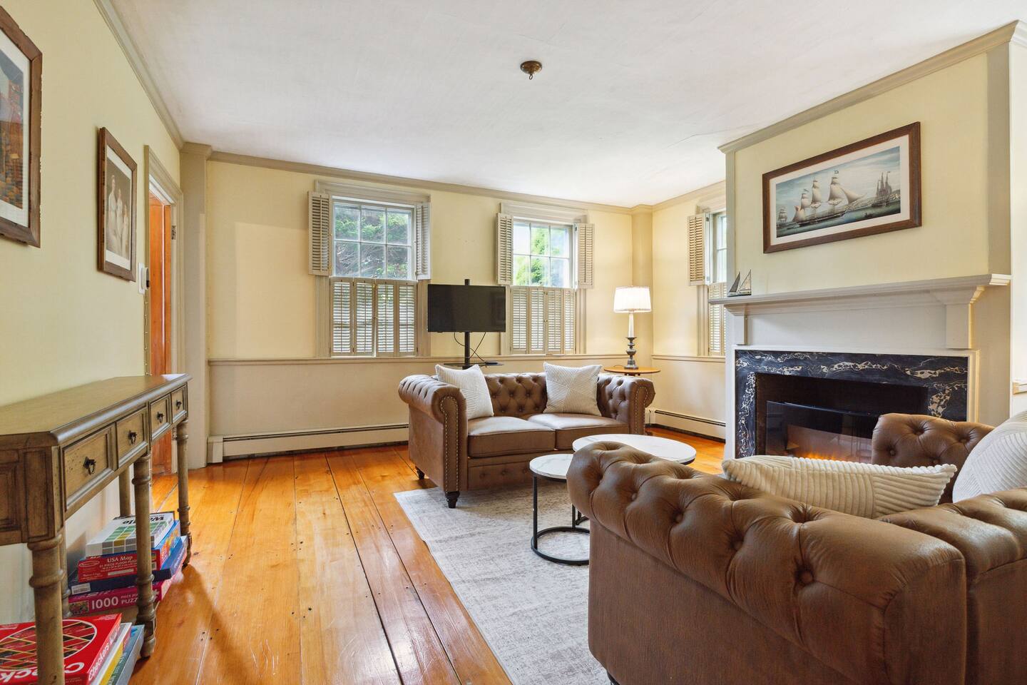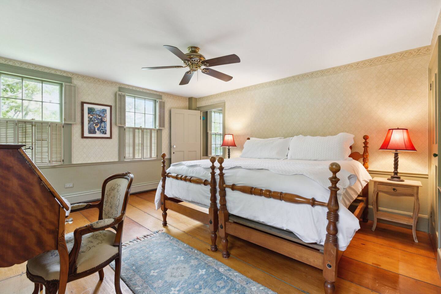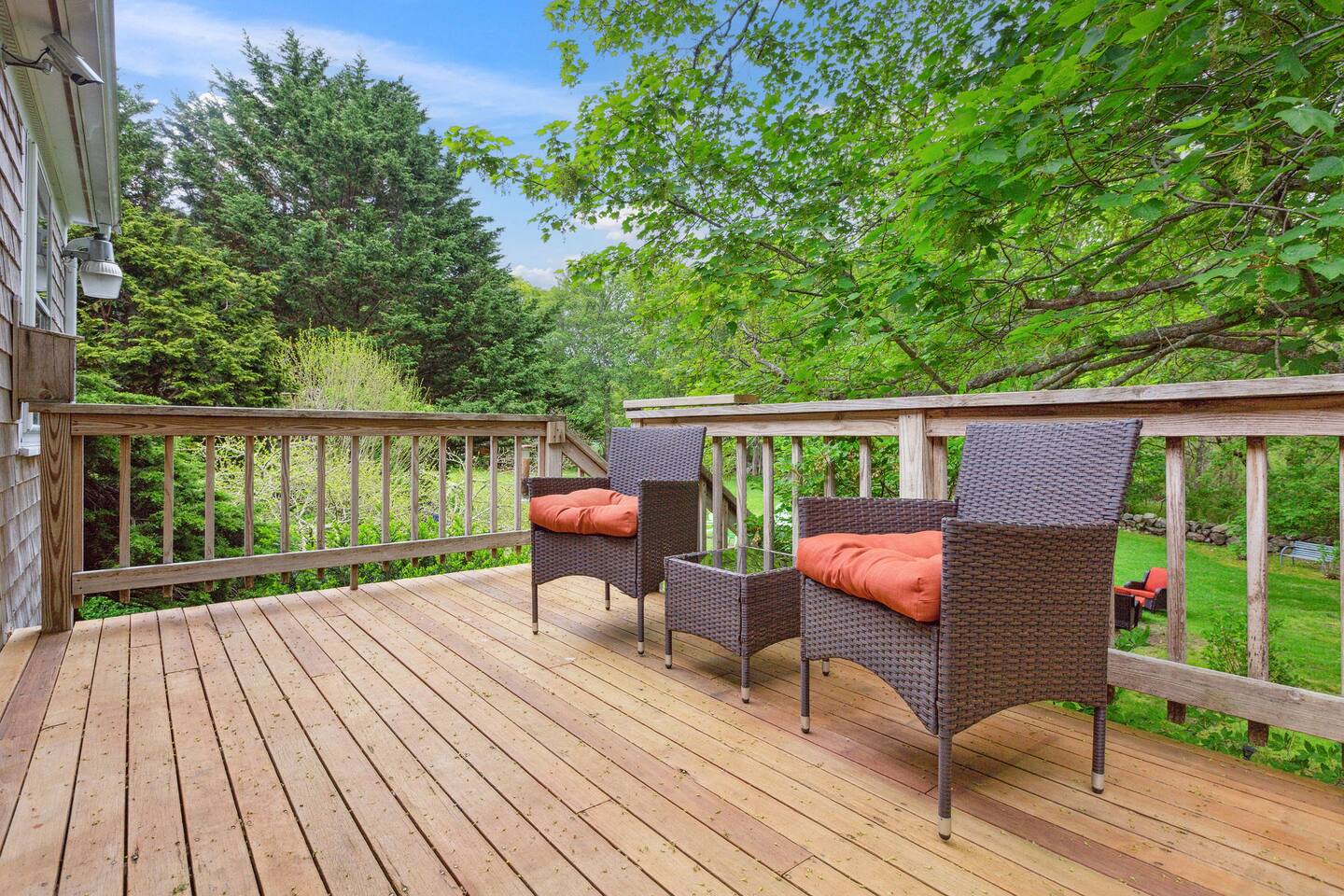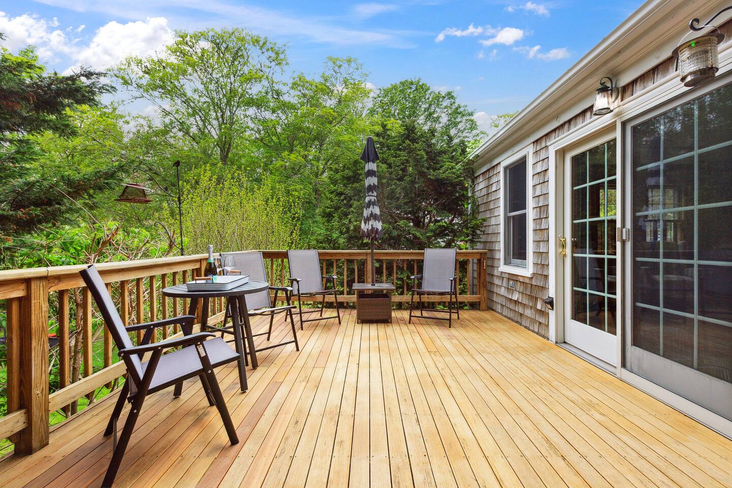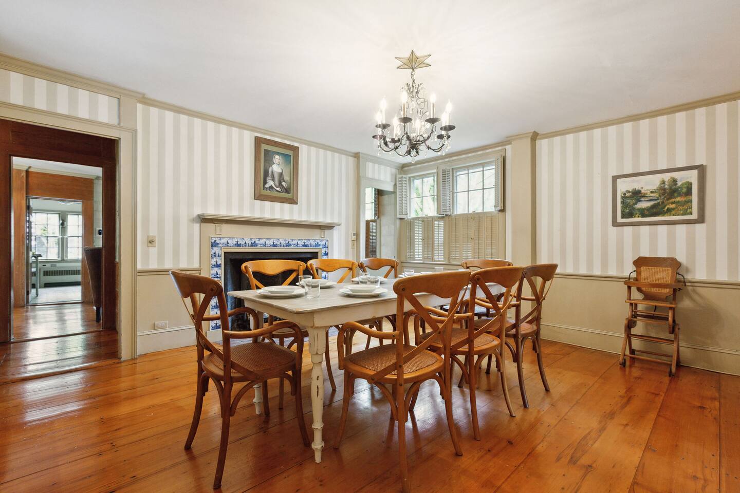 KEY FEATURES: ☀ Property Sleeps 10: 5 bedrooms, 2 kings, 1 queen, 2 full ☀ Bathrooms: 4 full bathrooms, 1 half bath ☀ Main House: Sea Captain's Estate - 4 bedrooms, 3.5 bathrooms ☀ Carriage House: In-law Suite: 1 full bed + kitchen, full bathroom & deck ☀ Heritage barn: Game Room with Ping Pong and tons of space to hangout with a seating area, large smart TV, games & deck ☀ Expansive grounds & gardens with tons of room to relax or play games ☀ Modern amenities and fully stocked kitchen ☀ Outdoor dining table & umbrella with seating for 10 guests ☀ Firepit with 12 Adironak chairs + 4 kids chair ☀ Outdoor lounge area with couch + chairs ☀ Butterfly garden with 2 tables & bench - seating for 10 guests ☀ Grill ☀ Outdoor shower ☀ Dedicated workspace ☀ Kid friendly amenities: changing table & high chair ☀ Pet friendly (pet fee: $150 per pet) ☀ Washer/Dryer ☀ Electric fireplace ☀ Beach chairs & towels ☀ Keypad entry (no keys!) ☀ 4 minutes to Paine's Creek Beach ☀ Walking distance to a cafe Here Are A Few Kind Words From Our Past Guests: "Great historic house! Nice and big with good sized bathrooms that are new. Kitchen is also big and well stocked. The house sits on large ground with lots of flowers and we even saw bunnies and wild turkeys in the yard! It was hot hot hot when we were visting and the super helpful host set us up with AC and made sure we were comfortable. Highly recommend!" - Daisy "An absolutely beautiful historic home with lots of land! The kitchen is well stocked with appliances and even essentials so it was easy to cook meals and enjoy the home. Bunnies and wild turkeys run around the property. The house was clean, the beds were very comfortable, and the towels were soft. There's tons of space for the kids to explore and plenty close to drive to other Cape Cod destinations! The hosts were friendly and accomodating. We had a wonderful time!" - Valerie ☆☆ MAIN HOUSE ☆☆ BEDROOMS - Bedroom #1: Full bed and ensuite - Bedroom #2: King bed (2 twins) and ensuite - Bedroom #3: King bed (2 twins) - Bedroom #4: Queen bed BATHROOMS - Bathroom #1: Half bath on the first floor - Bathroom #2: Full bathroom in the first floor bedroom - Bathroom #3: Full bathroom in second floor bedroom - Bathroom #4: Full bathroom off second floor hallway KITCHEN/LOUNGE - Well equipped kitchen with modern amenities, keurig & k-cups - Dining room with seating for 8 guests + high chair - Two living areas with cozy seating & electric fireplace OUTDOOR SPACE - Patio with dining table + umbrella with seating for 10 guests. - Cozy seating area with couch + chairs - Wood burning firepit with 12 adironak chairs + 4 kids chairs - Butterfly Garden with two tables, 8 chairs, 2 umbrellas, & bench - Expansive grounds & gardens - Outdoor shower COOLING - Standing Portable A/C units ☆☆ CARRIAGE HOUSE / IN LAW SUITE ☆☆ BED + BATH - Bedroom #5: Full bed - Bathroom #6: Full bathroom KITCHEN/LOUNGE - Well equipped kitchen with keurig + k-cups - Counter top with 2 chairs - Dining table + 2 chairs - Dedicated workspace with desk + chair - Smart TV - Two comfortable chairs OUTDOOR SPACE - Deck with 4 chairs, 2 tables & umbrella COOLING - A/C - Mini split ☆☆ HERITAGE BARN ☆☆ LOUNGE - Ping Pong Table - Keyboard - Seating area with couch + chairs - Table + chairs - 75" smart TV - Beverage cooler - Mini fridge OUTDOOR SPACE - Deck with seating area overlooking backyard BATH - Half bathroom COOLING - A/C - Mini split AVAILABILITY - Barn is available May-October. Winterized November-April. ☆☆ PROXIMITY TO BREWSTER BEACHES ☆☆ - Paines Creek Beach: 1 miles - Saint's Landing Beach: 1.1 miles - Mant's Landing (Robbins Hill Beach): 1.2 miles - Breakwater Beach: 2.0 miles - Ellis Landing Beach: 2.5 miles - Point of Rocks Landing Beach: 2.7 miles - Linnell Landing Beach: 3.0 miles - Crosby Landing Beach: 3.5 miles - Breakwater Beach: 1.7 miles - Mayflower Beach: 7 miles - Skaket Beach: 7.2 miles - Nauset Beach: 9.4 miles - Beach towels + chairs available for your use. ☆☆ NEARBY PLACES ☆☆ - Stony Brook Grist Mill and Museum: A historic site featuring a working grist mill and museum, offering insights into Brewster's past. - Cape Cod Museum of Natural History: A museum focusing on the natural history and archaeology of Cape Cod, with exhibits and walking trails. - Nickerson State Park: A 1,900-acre state park offering hiking trails, freshwater ponds, and camping facilities. - The Brewster Fish House: An upscale seafood restaurant known for its creative dishes served in a charming cottage setting. - Cafe Alfresco: A cozy spot offering a variety of breakfast and lunch options, including sandwiches, salads, and coffee. - Spinnaker Restaurant: A dining establishment offering a unique fusion of Italian-inspired cuisine with a focus on fresh, local ingredients. - Ocean Terrace at Ocean Edge Resort: A dining venue offering elevated New England classics with panoramic views of Cape Cod Bay. - The Kitchen Cafe: A local eatery known for its breakfast and lunch offerings, emphasizing fresh and locally sourced ingredients. - Freeman's Grill: A casual dining spot offering a variety of American cuisine, including burgers and seafood. - The Island Blue Crab: A seafood restaurant offering a variety of dishes with an emphasis on fresh, local seafood. - Drummer Boy Park: A park featuring walking trails, picnic areas, playground, and historic structures like an 18th-century windmill and blacksmith shop. ★★★ Book Today & Let Us Take Care Of You In Brewster! ★★★