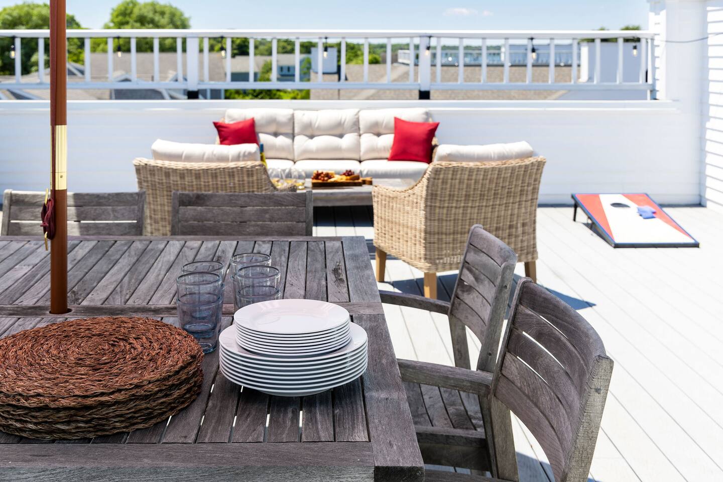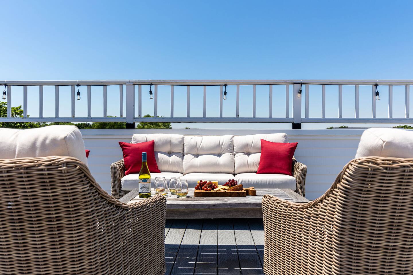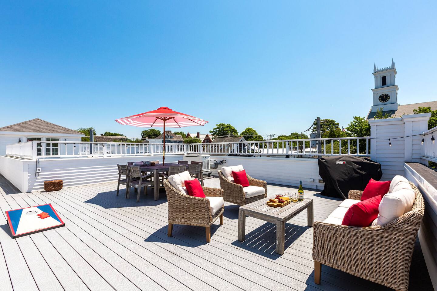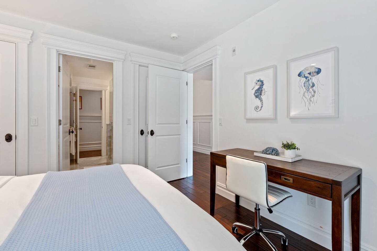KEY FEATURES: ☀ Located downtown Chatham, walk to restaurants and boutiques. ☀ Walking distance to Oyster Pond beach, Chatham Band Stand, Chatham A's baseball games at Veteran's Field & more! ☀ Sleeps 6: 3 bedrooms all with ensuites: 1 king, 2 queens ☀ 3 Full Bathrooms (One tub) ☀ 3 Dedicated workspaces in each bedroom ☀ 2 Living room areas ☀ Dining table with seating for 6 guests ☀ Modern amenities and well-equipped kitchen with countertop seating ☀ Two outdoor spaces: Deck off of kitchen + roof deck ☀ Roof deck: Dining table with seating for 8 guests, umbrella, seating area and grill ☀ 2 Smart TVs ☀ Board games + books ☀ Beach towels, Beach Chairs, Cooler and Umbrella ☀ Elevator access to the condo located on the second floor Here Are A Few Kind Words From Our Past Guests: "We had a great stay! Lucia was a responsive, friendly and helpful host. The unit was so comfortable and luxurious. A peaceful and spacious hideaway right in the middle of town. We had a glass of wine with cheese and crackers on the roof deck one night and it was absolutely lovely. Would rent again in the future." - Diana "Modern, super clean, well appointed, tastefully decorated, nice linens. Very comfortable stay, Lucia was a great host, flexible, and easy communication." - Jennifer "This place was excellent . Very clean and beautiful. Walkable to many restaurants n shopping locations. Prompt communication from the host. Would be happy to stay here any time again." - Anju ☆☆ BEDROOMS ☆☆ This gorgeous home accommodates 6 guests in 3 bedrooms. Every bedroom has an ensuite and a dedicated work space. The primary bedroom is fitted with a king size bed, full bathroom, desk + chair and smart TV. The two other bedrooms are fitted with a queen size bed, full bathroom, and desk + chair. ☆☆ BATHROOMS ☆☆ There are three full bathrooms, each of them stocked with all the essentials you need for the duration of your stay. Two bathrooms have walk-in showers and one bathroom has a tub. ☆☆ KITCHEN & LOUNGE ☆☆ Enjoy open concept living at this stunning condo with a deck overlooking Chatham main street. The stunning kitchen is fully equipped with all the appliances, cookware, and utensils you need to feel at home including double ovens, coffee machine + coffee, blender and so much more. There are 6 stools at the counter. The dining area is in between the kitchen and living room with seats for 6 guests at the dining table + a bar cart. Living room + Seating The living room is equipped with a large sectional, smart TV and console table filled with games and bookings for your enjoyment. There is a second seating area in front of the kitchen with a cozy leather couch and two chairs. There is a laundry room with a washer + dryer, equipped with laundry detergent in a room off of the hallway. ☆☆ OUTSIDE SPACE ☆☆ There is a deck off of the open concept living area with 4 chairs + table overlooking downtown Chatham. There is also a large roof deck area with a dining table for 8 guests as well as a lounge area with couch + chairs and grill. There are set of stairs outside of the condo to access the roof deck. Enjoy a cookout or soak up some warm sunshine on the roof deck. Both outdoor spaces are great spots to watch the Chatham 4th of July Parade or New Years Eve fireworks! ☆☆ KID FRIENDLY ☆☆ This home includes children's plates and a pack and play. ☆☆ PROXIMITY TO CHATHAM BEACHES ☆☆ - Oyster Pond Beach: .3 miles - Lighthouse Beach: 1.1 miles - Harding Beach: 3.3 miles ☆☆ NEARBY PLACES IN CHATHAM ☆☆ - Downtown Chatham - Chatham Bars Inn - Chatham Seaside Link Golf Course - Orpheum Theatre - Chatham Band Stand - Veterans Field (catch a summer Chatham A's baseball game!) - Chatham Village Market Grocery Store - The Chatham Squire - Lighthouse Beach - Oyster Pond Beach - Chatham Filling Station - Delmar Bar & Bistro - Impudent Oyster - Viera on Main - Sweet Tomatoes Pizza - Bluefins Sushi & Sake Bar - Wequassett Resort & Golf Club ★★★ Book Today & Let Us Take Care Of You In Chatham! ★★★