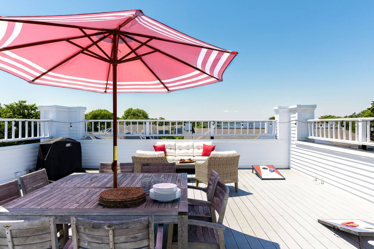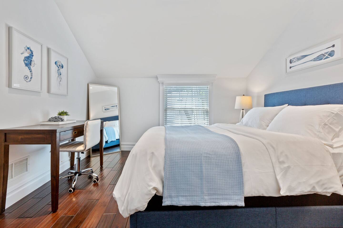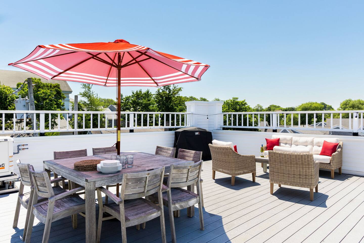 KEY FEATURES: ☀ Located downtown Chatham, walk to restaurants and boutiques. ☀ Walking distance to Oyster Pond beach, Chatham Band Stand, Chatham A's baseball games at Veteran's Field & more! ☀ Sleeps 6: 3 bedrooms all with ensuites: 1 king, 2 queens ☀ 3 Full Bathrooms (One tub) ☀ 3 Dedicated workspaces in each bedroom ☀ 2 Living room areas ☀ Dining table with seating for 6 guests ☀ Modern amenities and well-equipped kitchen with countertop seating ☀ Two outdoor spaces: Deck off of kitchen + roof deck ☀ Roof deck: Dining table with seating for 8 guests, umbrella, seating area and grill ☀ 2 Smart TVs ☀ Board games + books ☀ Beach towels, Beach Chairs, Cooler and Umbrella ☀ Elevator access to the condo located on the second floor Here Are A Few Kind Words From Our Past Guests: "We had a great stay! Lucia was a responsive, friendly and helpful host. The unit was so comfortable and luxurious. A peaceful and spacious hideaway right in the middle of town. We had a glass of wine with cheese and crackers on the roof deck one night and it was absolutely lovely. Would rent again in the future." - Diana "Modern, super clean, well appointed, tastefully decorated, nice linens. Very comfortable stay, Lucia was a great host, flexible, and easy communication." - Jennifer "This place was excellent . Very clean and beautiful. Walkable to many restaurants n shopping locations. Prompt communication from the host. Would be happy to stay here any time again." - Anju ☆☆ BEDROOMS ☆☆ This gorgeous home accommodates 6 guests in 3 bedrooms. Every bedroom has an ensuite and a dedicated work space. The primary bedroom is fitted with a king size bed, full bathroom, desk + chair and smart TV. The two other bedrooms are fitted with a queen size bed, full bathroom, and desk + chair. ☆☆ BATHROOMS ☆☆ There are three full bathrooms, each of them stocked with all the essentials you need for the duration of your stay. Two bathrooms have walk-in showers and one bathroom has a tub. ☆☆ KITCHEN & LOUNGE ☆☆ Enjoy open concept living at this stunning condo with a deck overlooking Chatham main street. The stunning kitchen is fully equipped with all the appliances, cookware, and utensils you need to feel at home including double ovens, coffee machine + coffee, blender and so much more. There are 6 stools at the counter. The dining area is in between the kitchen and living room with seats for 6 guests at the dining table + a bar cart. Living room + Seating The living room is equipped with a large sectional, smart TV and console table filled with games and bookings for your enjoyment. There is a second seating area in front of the kitchen with a cozy leather couch and two chairs. There is a laundry room with a washer + dryer, equipped with laundry detergent in a room off of the hallway. ☆☆ OUTSIDE SPACE ☆☆ There is a deck off of the open concept living area with 4 chairs + table overlooking downtown Chatham. There is also a large roof deck area with a dining table for 8 guests as well as a lounge area with couch + chairs and grill. There are set of stairs outside of the condo to access the roof deck. Enjoy a cookout or soak up some warm sunshine on the roof deck. Both outdoor spaces are great spots to watch the Chatham 4th of July Parade or New Years Eve fireworks! ☆☆ KID FRIENDLY ☆☆ This home includes children's plates and a pack and play. ☆☆ PROXIMITY TO CHATHAM BEACHES ☆☆ - Oyster Pond Beach: .3 miles - Lighthouse Beach: 1.1 miles - Harding Beach: 3.3 miles ☆☆ NEARBY PLACES IN CHATHAM ☆☆ - Downtown Chatham - Chatham Bars Inn - Chatham Seaside Link Golf Course - Orpheum Theatre - Chatham Band Stand - Veterans Field (catch a summer Chatham A's baseball game!) - Chatham Village Market Grocery Store - The Chatham Squire - Lighthouse Beach - Oyster Pond Beach - Chatham Filling Station - Delmar Bar & Bistro - Impudent Oyster - Viera on Main - Sweet Tomatoes Pizza - Bluefins Sushi & Sake Bar - Wequassett Resort & Golf Club ★★★ Book Today & Let Us Take Care Of You In Chatham! ★★★