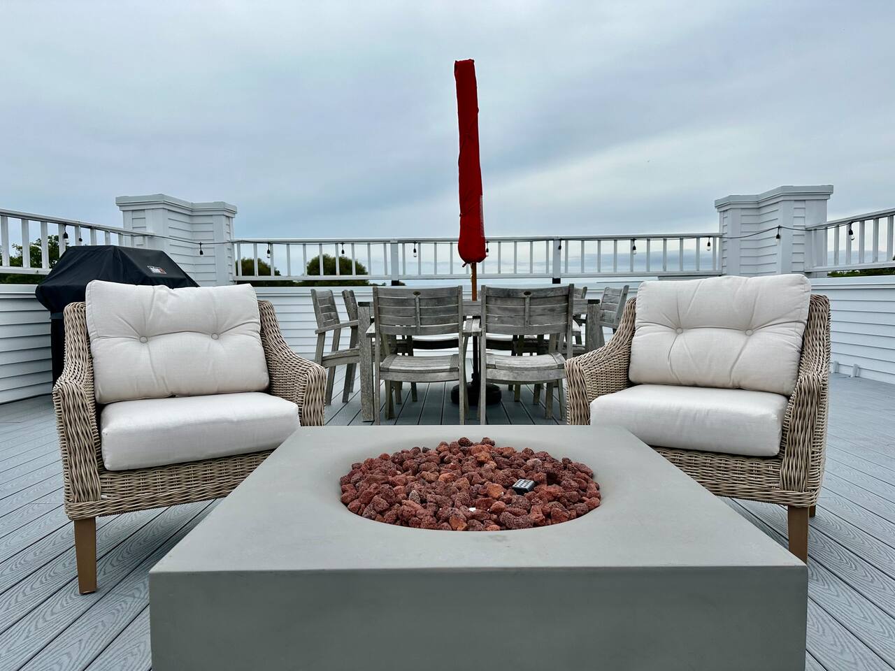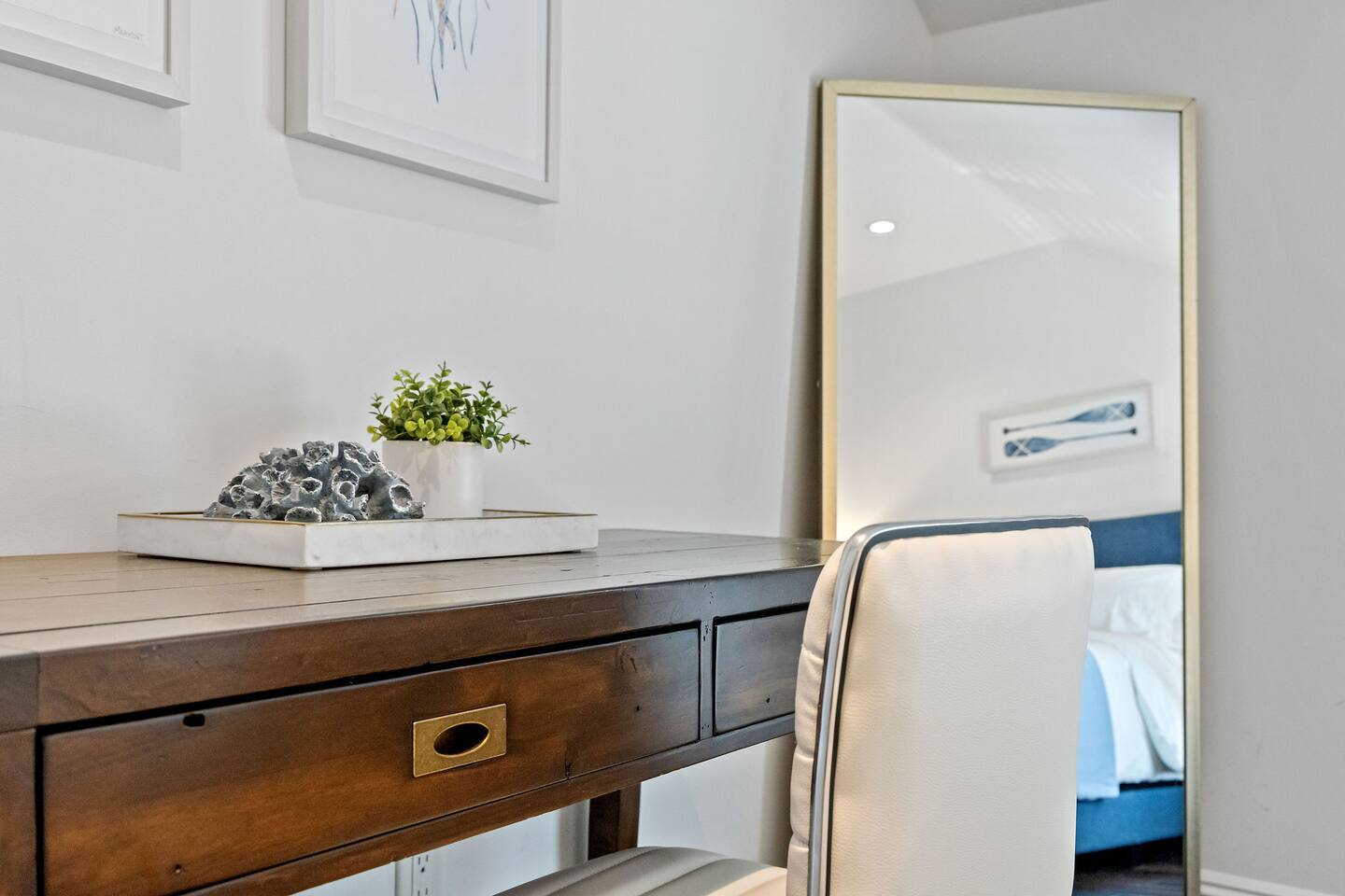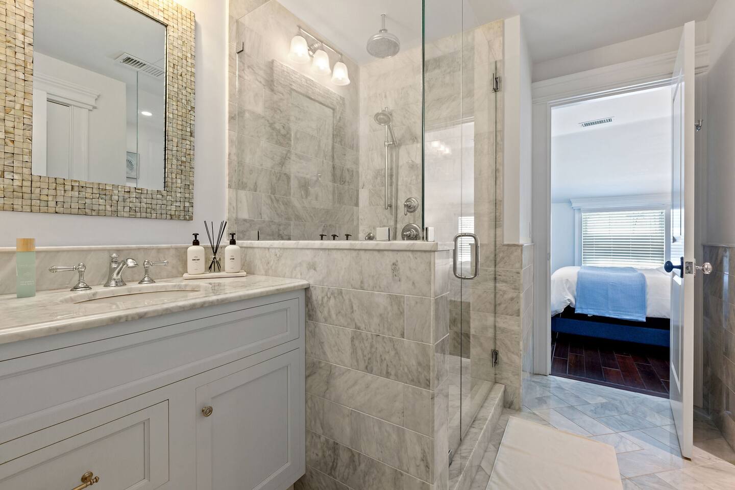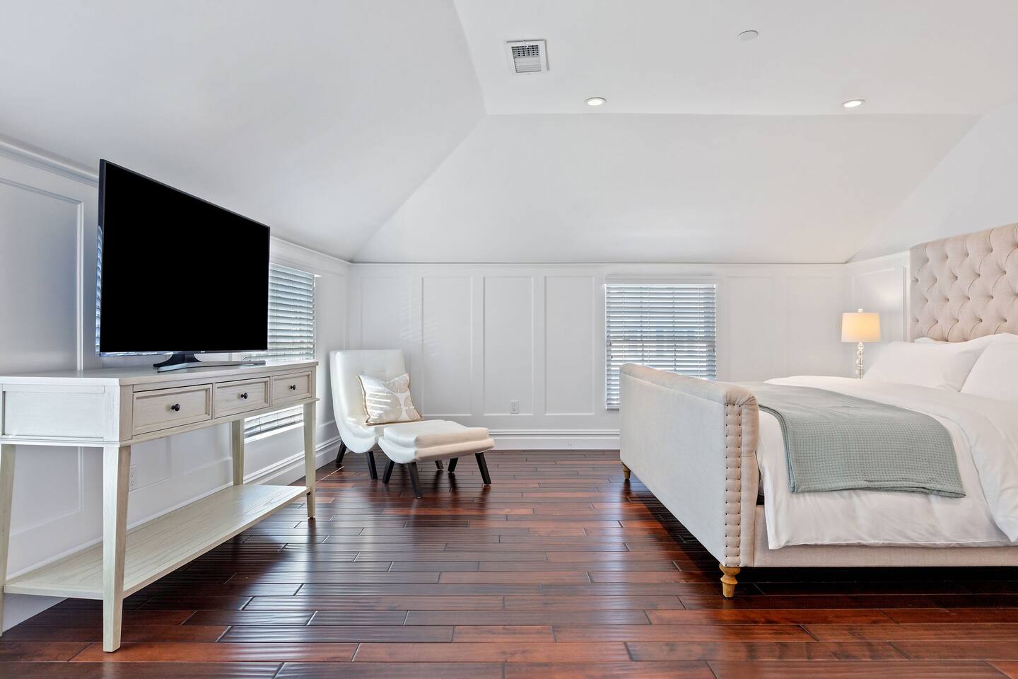KEY FEATURES: ☀ Located downtown Chatham, walk to restaurants and boutiques. ☀ Walking distance to Oyster Pond beach, Chatham Band Stand, Chatham A's baseball games at Veteran's Field & more! ☀ Sleeps 6: 3 bedrooms all with ensuites: 1 king, 2 queens ☀ 3 Full Bathrooms (One tub) ☀ 3 Dedicated workspaces in each bedroom ☀ 2 Living room areas ☀ Dining table with seating for 6 guests ☀ Modern amenities and well-equipped kitchen with countertop seating ☀ Two outdoor spaces: Deck off of kitchen + roof deck ☀ Roof deck: Dining table with seating for 8 guests, umbrella, seating area and grill ☀ 2 Smart TVs ☀ Board games + books ☀ Beach towels, Beach Chairs, Cooler and Umbrella ☀ Elevator access to the condo located on the second floor Here Are A Few Kind Words From Our Past Guests: "We had a great stay! Lucia was a responsive, friendly and helpful host. The unit was so comfortable and luxurious. A peaceful and spacious hideaway right in the middle of town. We had a glass of wine with cheese and crackers on the roof deck one night and it was absolutely lovely. Would rent again in the future." - Diana "Modern, super clean, well appointed, tastefully decorated, nice linens. Very comfortable stay, Lucia was a great host, flexible, and easy communication." - Jennifer "This place was excellent . Very clean and beautiful. Walkable to many restaurants n shopping locations. Prompt communication from the host. Would be happy to stay here any time again." - Anju ☆☆ BEDROOMS ☆☆ This gorgeous home accommodates 6 guests in 3 bedrooms. Every bedroom has an ensuite and a dedicated work space. The primary bedroom is fitted with a king size bed, full bathroom, desk + chair and smart TV. The two other bedrooms are fitted with a queen size bed, full bathroom, and desk + chair. ☆☆ BATHROOMS ☆☆ There are three full bathrooms, each of them stocked with all the essentials you need for the duration of your stay. Two bathrooms have walk-in showers and one bathroom has a tub. ☆☆ KITCHEN & LOUNGE ☆☆ Enjoy open concept living at this stunning condo with a deck overlooking Chatham main street. The stunning kitchen is fully equipped with all the appliances, cookware, and utensils you need to feel at home including double ovens, coffee machine + coffee, blender and so much more. There are 6 stools at the counter. The dining area is in between the kitchen and living room with seats for 6 guests at the dining table + a bar cart. Living room + Seating The living room is equipped with a large sectional, smart TV and console table filled with games and bookings for your enjoyment. There is a second seating area in front of the kitchen with a cozy leather couch and two chairs. There is a laundry room with a washer + dryer, equipped with laundry detergent in a room off of the hallway. ☆☆ OUTSIDE SPACE ☆☆ There is a deck off of the open concept living area with 4 chairs + table overlooking downtown Chatham. There is also a large roof deck area with a dining table for 8 guests as well as a lounge area with couch + chairs and grill. There are set of stairs outside of the condo to access the roof deck. Enjoy a cookout or soak up some warm sunshine on the roof deck. Both outdoor spaces are great spots to watch the Chatham 4th of July Parade or New Years Eve fireworks! ☆☆ KID FRIENDLY ☆☆ This home includes children's plates and a pack and play. ☆☆ PROXIMITY TO CHATHAM BEACHES ☆☆ - Oyster Pond Beach: .3 miles - Lighthouse Beach: 1.1 miles - Harding Beach: 3.3 miles ☆☆ NEARBY PLACES IN CHATHAM ☆☆ - Downtown Chatham - Chatham Bars Inn - Chatham Seaside Link Golf Course - Orpheum Theatre - Chatham Band Stand - Veterans Field (catch a summer Chatham A's baseball game!) - Chatham Village Market Grocery Store - The Chatham Squire - Lighthouse Beach - Oyster Pond Beach - Chatham Filling Station - Delmar Bar & Bistro - Impudent Oyster - Viera on Main - Sweet Tomatoes Pizza - Bluefins Sushi & Sake Bar - Wequassett Resort & Golf Club ★★★ Book Today & Let Us Take Care Of You In Chatham! ★★★