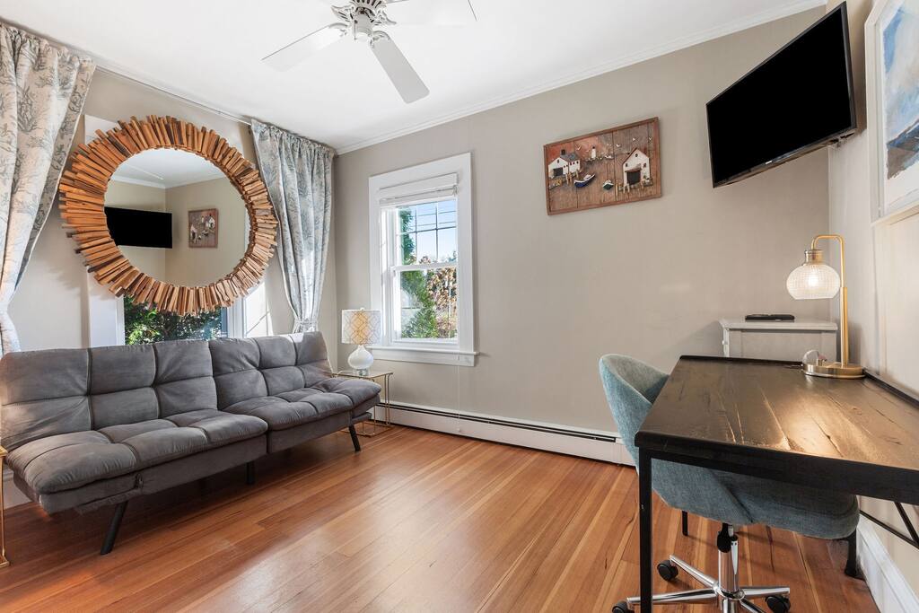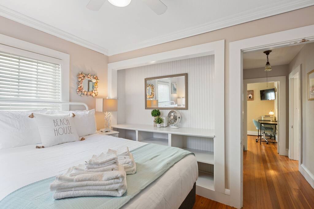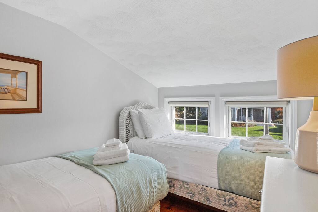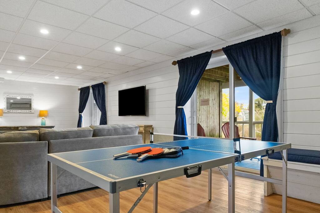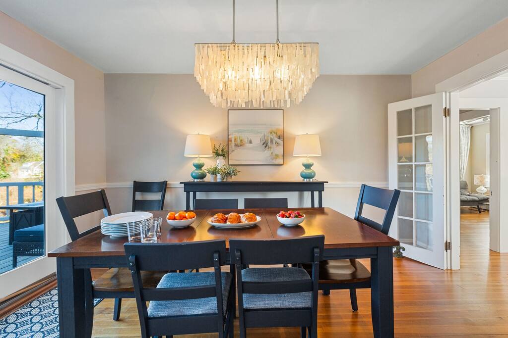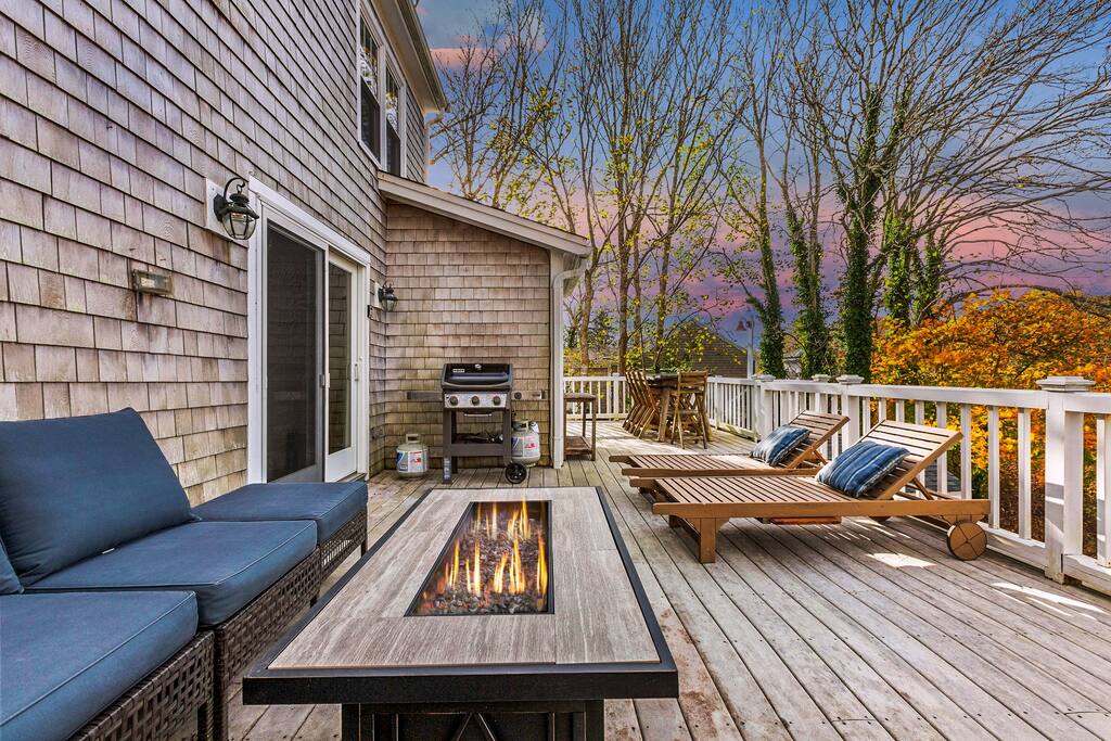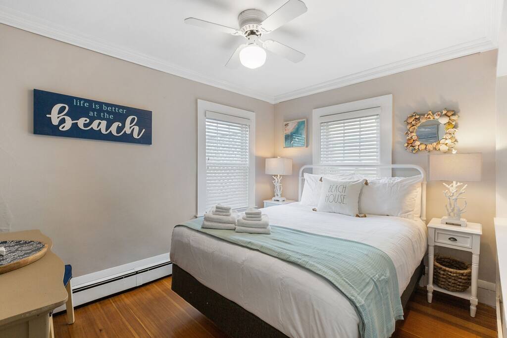 KEY FEATURES: ☀ Located downtown Chatham, walk to restaurants and boutiques ☀ Walking distance to Oyster Pond Beach, Seaside Links Golf Course, Chatham Band Stand, Chatham A's baseball games at Veteran's Field & more! ☀ Sleeps 8: 5 bedrooms ☀ 2.5 Bathrooms ☀ 1 Dedicated workspace ☀ Dining table with seating for 8 guests ☀ Modern amenities and well-equipped kitchen ☀ Top deck includes dining table with seating for 10 guests, outdoor sectional, 2 lounge chairs, fire table, and grill ☀ Bottom deck includes two seating areas and spacious outdoor shower ☀ Finished basement with large sectional, seating area, ping pong table, and sliders to deck ☀ 3 Smart TVs ☀ Ping pong table, board games & puzzles ☀ Beach towels, beach chairs, umbrella & beach toys ☆☆ BEDROOMS ☆☆ This beautiful home accommodates 8 guests in 5 bedrooms. The first floor has one bedroom with a queen size bed. The second floor has three bedrooms. One bedroom with a queen size bed, one bedroom with a full size bed, and one bedroom with two twin beds. The basement has one bedroom with a king size bed. Air conditioning details + fan details: - First floor: The bedroom with queen bed has a window A/C unit + floor fan. - Second floor: There is a mini split in the hallway that cools down the second floor. The queen + full bedrooms also have window A/C units + floor fans. The twin bedroom does not have a window A/C unit but has a stand up fan. - Basement: The basement with a king bed has a mini split, but not specifically in the bedroom. There is a stand up fan in the bedroom. ☆☆ BATHROOMS ☆☆ There are two full bathrooms and one half bathroom. On the first floor, there is a half bathroom. On the second floor, there is a full bathroom, and in the basement there is a full bathroom. In addition, there is a spacious outdoor shower on the lower level deck that you can access from the basement. Each bathroom is stocked with all the essentials you need for the duration of your stay. ☆☆ KITCHEN & LOUNGE ☆☆ The beautiful kitchen is fully equipped with all the appliances, cookware, and utensils you need to feel at home including a coffee machine and more. The dining area is in between the kitchen and living room with sliders that go to the deck. The outdoor dining table has seats for 10 guests. The living room is equipped with a couch, chairs, and smart TV with a door opening to the front porch. There is a spacious finished basement with a large sectional, bench seating area against the wall, smart TV, bedroom, full bathroom, ping pong table, and sliders that open to the lower level deck. In the basement is a washer + dryer, equipped with laundry detergent and dryer sheets. On the first level, there is an office space with a desk, chair, smart TV, and futon. The home does not have central air, but there are two ductless HVAC AC units (second level and basement) that works well to cool down the areas. There is also a Black and Decker AC unit in the living room. ☆☆ OUTSIDE SPACE ☆☆ There is a deck off of the dining room including a dining table with seating for 10 guests, a large sectional + chairs with seating for 8 guests, 2 lounge chairs, a fire table, and Weber grill. The deck overlooks the backyard. Enjoy a cookout or soak up some warm sunshine on the roof deck. The lower level deck includes two seating areas and spacious outdoor shower. There is a lovely porch on the front of the house with seating for four guests and a coffee table. The driveway has parking for 4 vehicles. ☆☆ PROXIMITY TO CHATHAM BEACHES ☆☆ - Oyster Pond Beach: .4 miles - Lighthouse Beach: 1.1 miles - Harding Beach: 3.3 miles ☆☆ NEARBY PLACES IN CHATHAM ☆☆ - Downtown Chatham - Chatham Bars Inn - Chatham Seaside Link Golf Course - Orpheum Theatre - Chatham Band Stand - Veterans Field (catch a summer Chatham A's baseball game!) - Chatham Village Market Grocery Store - The Chatham Squire - Lighthouse Beach - Oyster Pond Beach - Chatham Filling Station - Delmar Bar & Bistro - Impudent Oyster - Viera on Main - Sweet Tomatoes Pizza - Bluefins Sushi & Sake Bar - Wequassett Resort & Golf Club & so much more! ★★★ Book Today & Let Us Take Care Of You In Chatham! ★★★