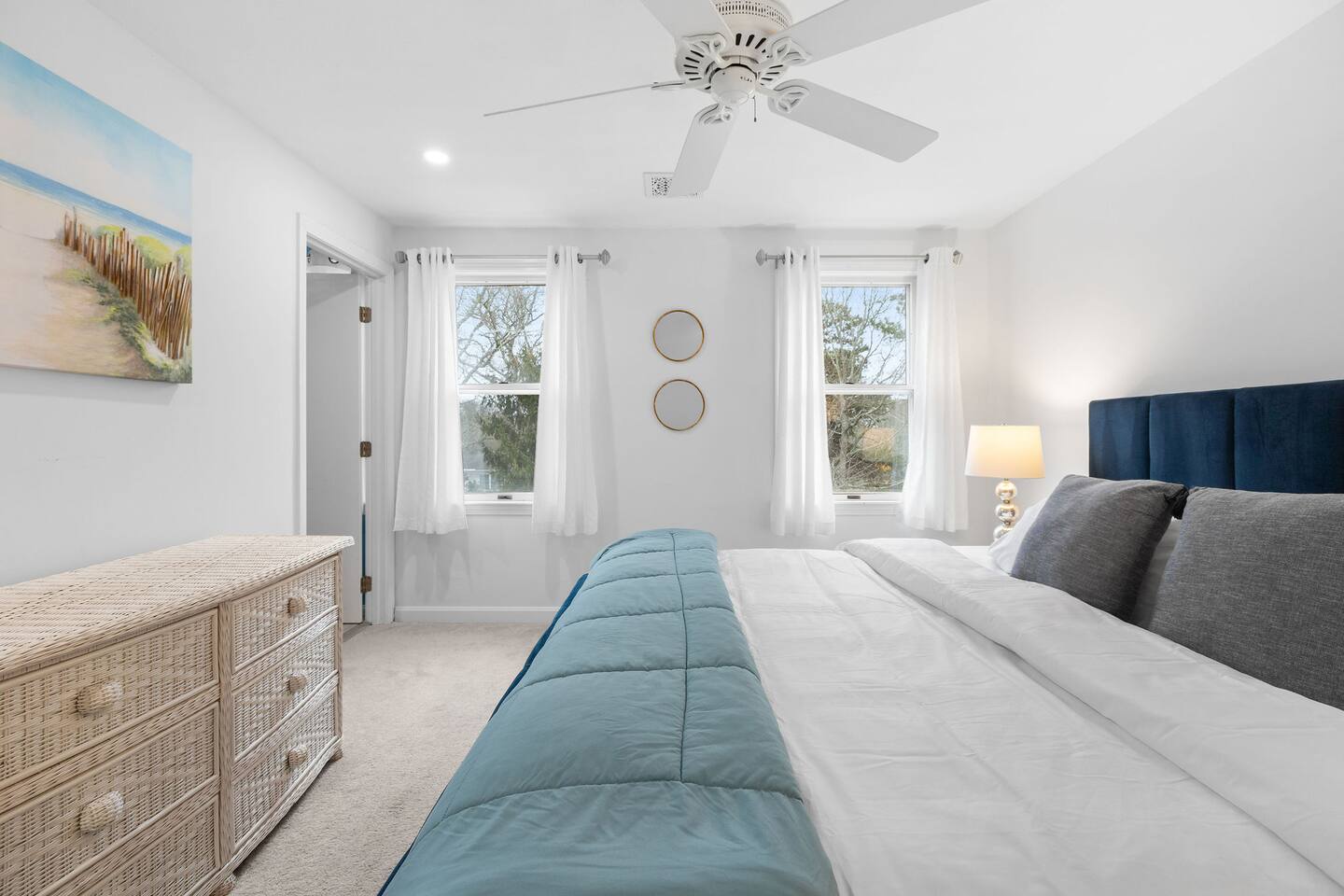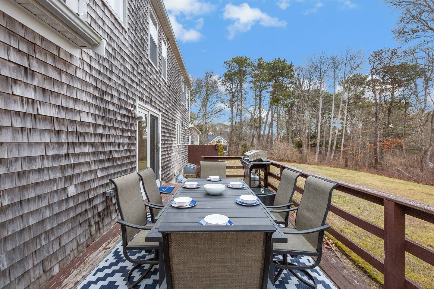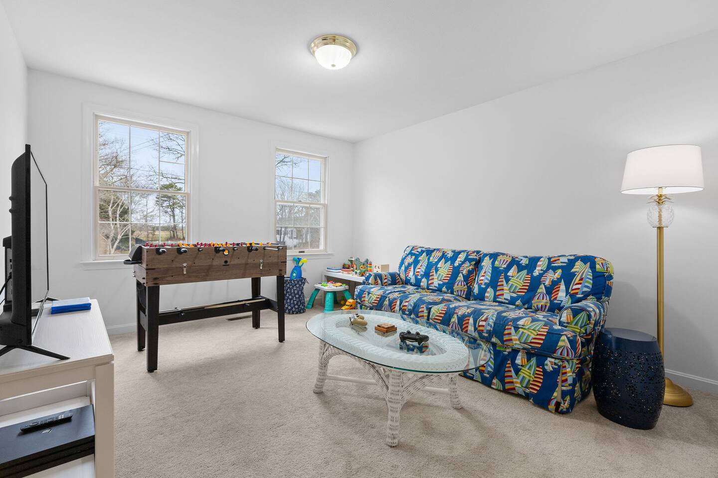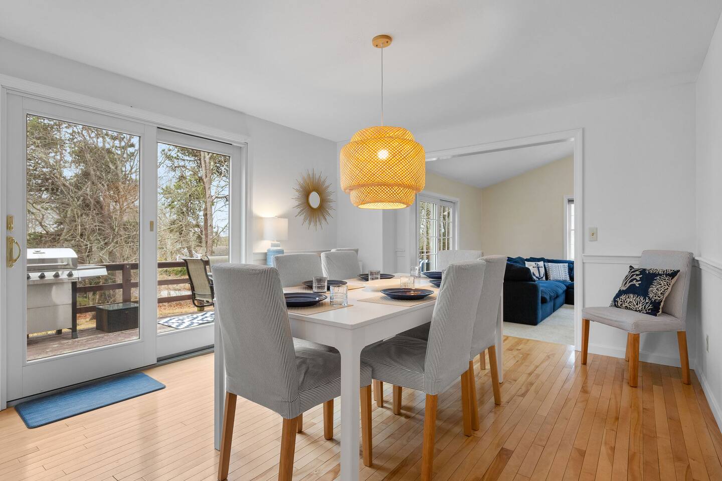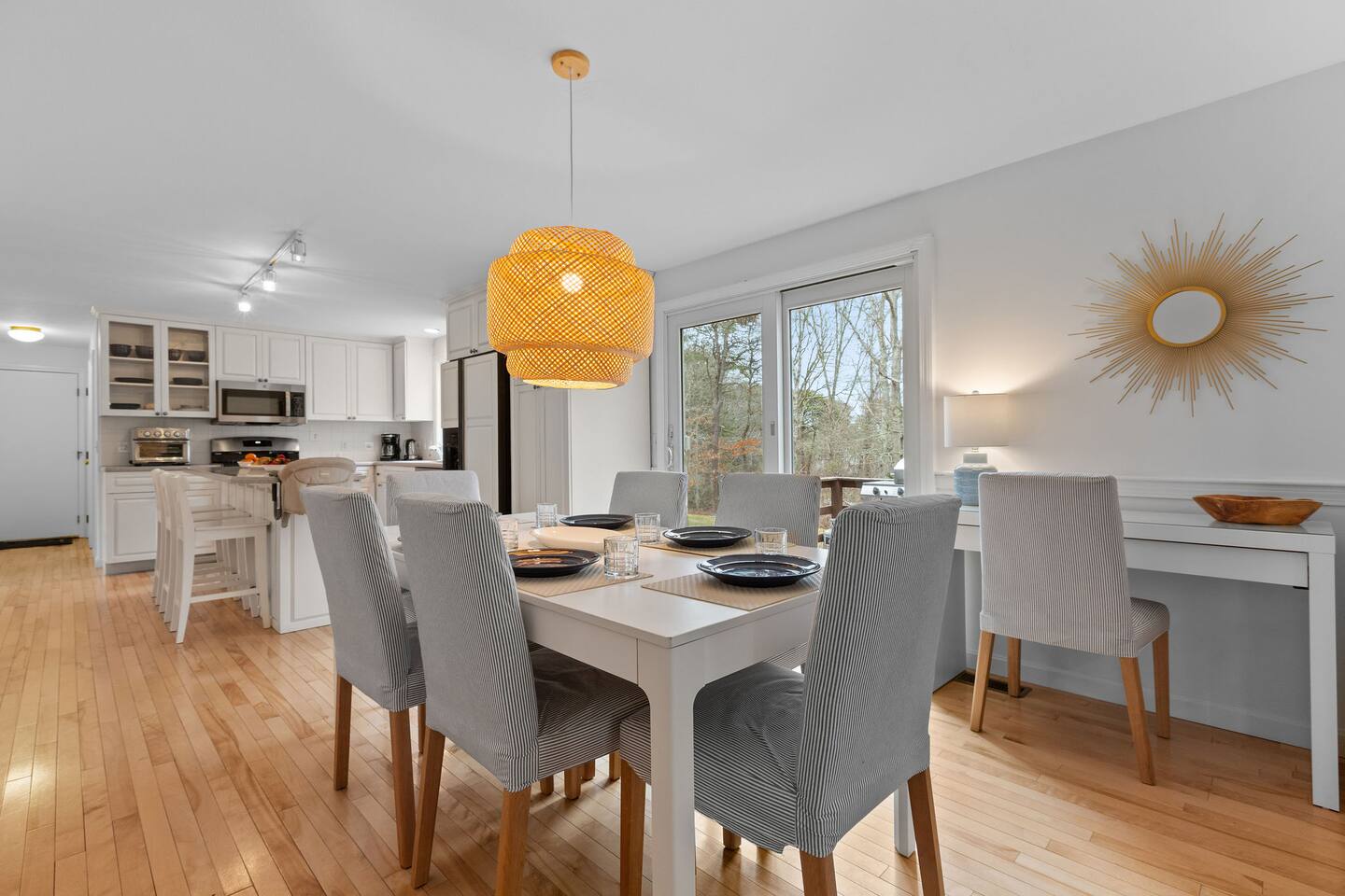 KEY FEATURES: ☀ Sleeps 10; 4 bedrooms, 1 king, 2 queen, 4 twin ☀ Bathrooms; 2.5 bathrooms ☀ Walk to the beach ☀ Playroom with foosball, playstation, toys, games & books ☀ Stylish Dining Room with seating for 8 at the dining table and 4 at the countertop (12 total seats) ☀ Two cozy living rooms, one with an oversized sectional ☀ Modern amenities and fully stocked kitchen ☀ Spacious Deck; grill, dining table and couch ☀ Large yard with corn hole and dice ☀ Outdoor shower ☀ Dedicated workspace ☀ Kid friendly amenities: pack & plays, kids plates, cups & utensils, pool chairs, & more ☀ Central A/C ☀ Smart TV ☀ Keypad entry ☀ Washer/Dryer ☀ 3 min drive to Wequassett Resort & Golf Club ☀ Located on Fox Hill Drive in Chatham ☆☆ BEDROOMS ☆☆ This gorgeous home accommodates 10 guests in 4 bedrooms. Each bed is fitted with hotel quality linens. Second floor: - Bedroom #1: King bed and ensuite - Bedroom #2: Queen bed - Bedroom #3: Queen bed - Bedroom #4: Four Twin beds (2 bunk beds) ☆☆ BATHROOMS ☆☆ There are two full bathrooms and one half bathroom in this home, each of them stocked with all the essentials you need for the duration of your stay including shampoo, conditioner, body wash, hand soap, lotion, hair dryers, and towels. First floor: - 1 Half bathroom with washer/dryer + laundry detergent & dryer sheets Second floor: - Full bathroom #1: Shower with a tub - Full bathroom #2: Shower only ☆☆ KITCHEN & LOUNGE ☆☆ Kitchen: fully equipped with all the appliances, cookware, and utensils you need to feel at home including a Keurig with K-cups. The kitchen has counter seating with 3 stools, a dining table with seating for 8 guests. There is a slider off of the kitchen leading to the deck and backyard. Living room: - #1: Large oversized sectional, board games, and a smart TV, allowing full access to your favorite streaming services - #2: Cozy couch and two chairs Play room: fun filled playroom with a couch, TV, playstation, foosball table, games, books and toys. ☆☆ OUTSIDE SPACE ☆☆ Backyard/Deck: The exterior area of this home has a deck with a grill, dining table and lounge area, as well as a spacious backyard with an outdoor shower + cornhole and dice ☆☆ KID FRIENDLY ☆☆ This home is equipped for families including: Infants: -Uppababy bassinet and stand -Doona stroller -Philips Avent bottle sterilizer -Pack n Play -Bumbo chair -Inglessina portable high chair Toddler: -Joovy Room2 pack n play -Stokke Tripp Trap high chair -Many games including Lovevery and train table -Uppababy Minu V2 Kids: -Outdoor corn hole -Foosball table -PlayStation 4 ☆☆ PROXIMITY TO CHATHAM BEACHES ☆☆ - Jacknife Beach: .5 miles - Oyster Pond Beach: 3.3 miles - Lighthouse Beach: 3.9 miles - Harding Beach: 4.1 miles ☆☆ NEARBY PLACES ☆☆ - Wequassett Resort & Golf Club - The Perk - Pain d'Avignon - Chatham Raw Bar - Downtown Chatham - Stop & Shop - Chatham Bars Inn - Chatham Seaside Link Golf Course - Orpheum Theatre - Chatham Band Stand - Veterans Field (catch a summer Chatham A's baseball game!) - Chatham Village Market Grocery Store - The Chatham Squire - Lighthouse Beach - Oyster Pond Beach - Chatham Filling Station - Delmar Bar & Bistro - Impudent Oyster - Viera on Main - Sweet Tomatoes Pizza - Bluefins Sushi & Sake Bar - Eastward Ho Golf Course (private/invite only) ★★★ Book Today & Let Us Take Care Of You In Chatham! ★★★