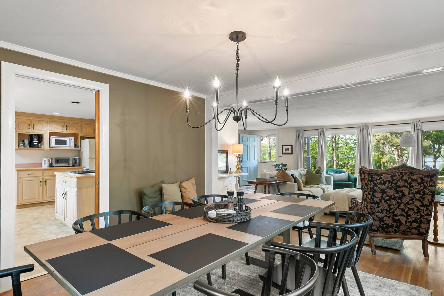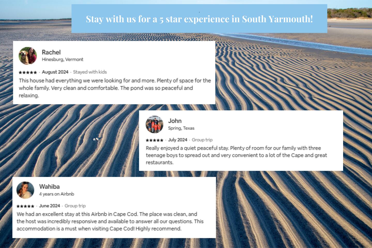 Enjoy stunning lake views with beach access right across the street! Perfect for families, with kid friendly amenities including a pack-n-play. Relax in our cozy, well-equipped home that's close to everything you need for the perfect Cape Cod getaway! Across the street from Long Pond 5 min drive to Bass River Beach 12 min drive to Hyannis Nantucket & Matha's Vineyard ferries 2 min drive to restaurants + groceries Experience South Yarmouth with us & Learn More Below!