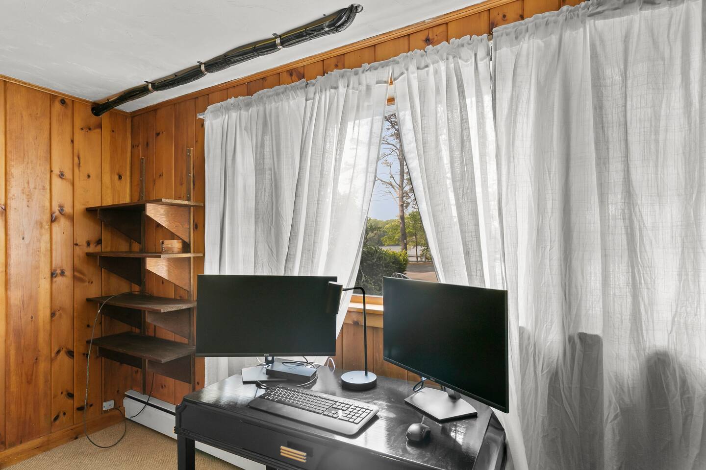 Here Are A Few Kind Words From Our Past Guests: - "This house had everything we were looking for and more. Plenty of space for the whole family. Very clean and comfortable. The pond was so peaceful and relaxing." - Rachel - "Really enjoyed a quiet peaceful stay. Plenty of room for our family with three teenage boys to spread out and very convenient to a lot of the Cape and great restaurants." - John "This Cape Cod stay was less than 10 minutes to beaches, restaurants, groceries, & activities, but with a fantastic level of privacy! Was the perfect place for our group of 6 - would definitely stay again!" - Laura KEY FEATURES: ☀ Pond views & access! ☀ Sleeps 6; 3 bedrooms, 2 king, 2 full (bunk bed), 1 twin ☀ Bathrooms; 2 full bathrooms + 1 half bathroom ☀ Outdoor: Firepit with 6 Adironak chairs, grill, outdoor shower ☀ Stylish living room with fireplace ☀ Dining Room with seating for 8 guests ☀ Well-equipped kitchen with a Keurig + K-cups ☀ Dedicated office + workpace ☀ Foosball Table ☀ 4 Smart TVs ☀ Kid friendly amenities including a pack & play, high chair, games & toys ☀ A/C - Mini Splits ☀ 6 Beach Chairs ☀ Washer/Dryer ☆☆ BEDROOMS ☆☆ This gorgeous home accommodates 6 guests in 3 bedrooms. First level: - Bedroom #1: king size bed + smart TV + lake view - Bedroom #2: king size bed + smart TV - Bedroom #3: 2 full beds (bunk bed) + twin pull out ☆☆ BATHROOMS ☆☆ There are two full bathrooms and one half bathroom in this home, each of them stocked with all the essentials you need for the duration of your stay including shampoo, conditioner, body wash, hand soap, lotion, blow dryers, and towels. First level: - 1 Full bathroom: shower + tub - 1 Half bathroom Bottom level: - 1 Full bathroom: shower ☆☆ KITCHEN & LOUNGE ☆☆ Primary level: - Kitchen: fully equipped with all the appliances, cookware, and utensils you need to feel at home including coffee machine + coffee. - Living room: enjoy pond views from the living room equipped with a cozy couch, chairs, wood burning fireplace and a 65" HD smart TV, allowing full access to your favorite streaming services. - Sun room: bright and airy sun room including a dining table with seating for 4 guests, 2 rocking chairs, smart TV, games, toys and a pull out sofa. Bottom level: - Office/Playroom: equipped with dedicated workspace including a desk, dual monitors, docking station, mouse, chair and couch. There is also a foosball table for your enjoyment! - Basement: washer + dryer - Garage: equipped with 6 beach chairs ☆☆ OUTSIDE SPACE ☆☆ - Front yard: enjoy lake views from the patio equipped with a firepit and adironak chairs - Back yard: spacious backyard with a BBQ grill and outdoor shower. ☆☆ KID FRIENDLY ☆☆ This home is equipped for families including: - Pack & Play ☆☆ PROXIMITY TO BEACHES ☆☆ - Long Pond Beach: across the street - Bass River Beach: 1.8 miles - South River Beach: 2 miles - Seagull Beach: 3.9 miles - Greys Beach: 5.4 miles - Mayflower Beach: 6.1 miles - Nauset Beach: 20 miles ☆☆ NEARBY PLACES ☆☆ - West Yarmouth Fish & Lobster - Cape Cod Creamery - Devil's Purse Brewing Company - Summer Shanty - Captain Parker's Pub - Skipper Chowder House - Gerardi's Cafe - Hearth 'n Kettle - The Sand Bar - Sea Dog Brew Pub - Longfellow's Pub - Stop & Shop - Shaws - Regina Pizzeria - Bass River Golf Course - Pirate's Cove Adventure Golf - Yarmouth-Dennis Red Sox - The Cape Playhouse - Wings Grove Playground - Cape Cod Inflatable Park - Yarmouth Chamber of Commerce ★★★ Book Today & Let Us Take Care Of You In South Yarmouth! ★★★ MID TERM RENTALS Please know that linens + consumables are NOT included in 30D+ stays unless specifically agreed upon in writing. An agreement will also be required to sign