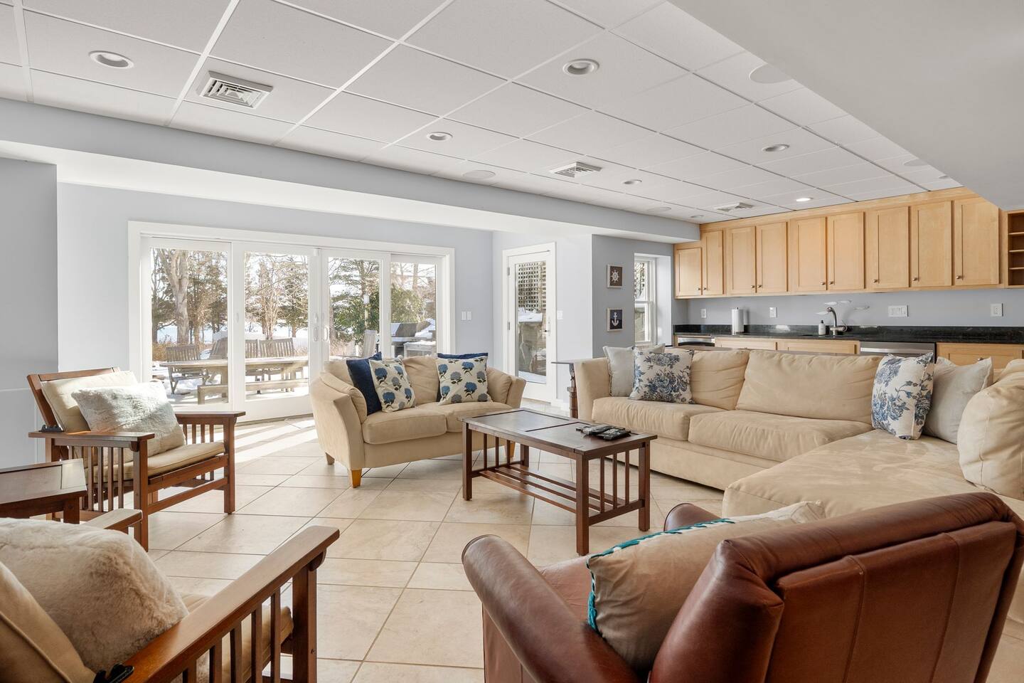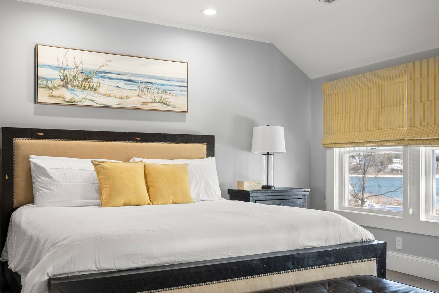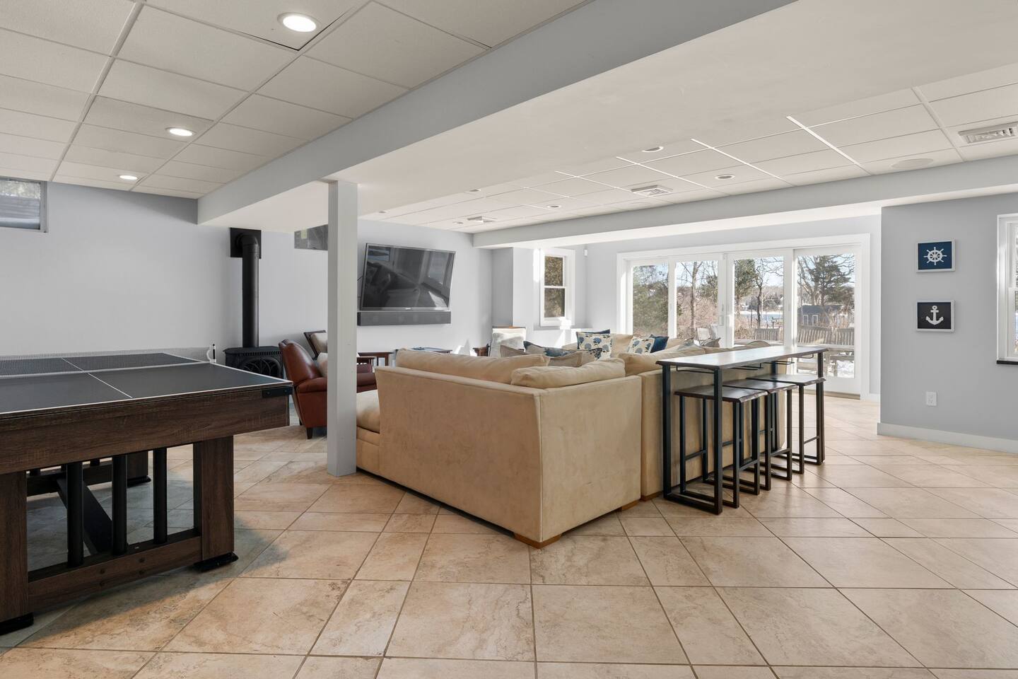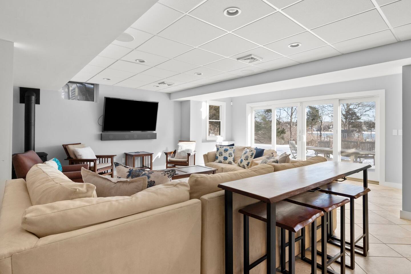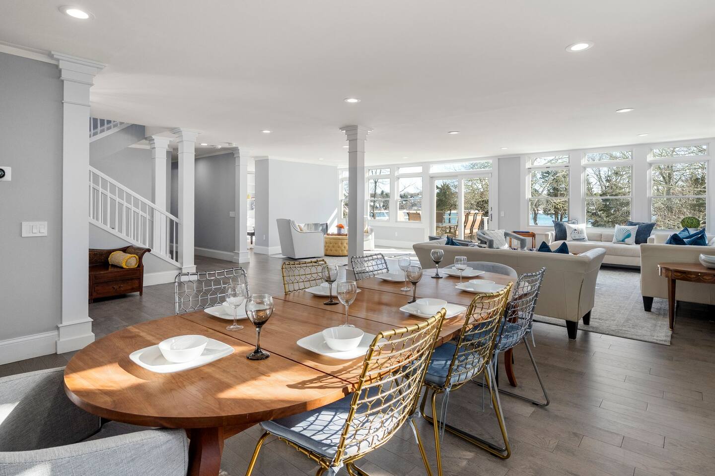 The space KEY FEATURES: ☀ Sleeps 12: 4 bedrooms + 1 bonus room (2 kings, 4 queens, 1 full, twin bunk beds) ☀ Bathrooms: 4.5 bathrooms ☀ Waterfront living: Bayfront home with a walking path leading directly to the water ☀ Hot tub on the deck ☀ Expansive deck with lounge chairs, outdoor dining table seating for 10 ☀ Private sauna ☀ Spacious game room with convertible pool/ping pong table ☀ Kayaks, canoes & paddleboards (stored on outdoor stands) ☀ Outdoor shower ☀ Firepit ☀ Bright, open living areas with water views ☀ Indoor dining table with seating for 8 ☀ Fully equipped kitchen with stainless steel appliances & island seating ☀ Spacious outdoor areas for relaxing and gathering ☀ Keyless entry ☀ Washer & Dryer ☀ Boat house: Perfect for storing gear and launching bay adventures ☀ Dedicated worksapce ☆☆ BEDROOMS ☆☆ This spacious waterfront home comfortably accommodates up to 12 guests, all beds are fitted with hotel quality linens. First Floor: - Bedroom #1: Queen bed - Bedroom #2: King bed + water views Second Floor - Bedroom #3 (Primary): King bed + ensuite bathroom + smart TV - Bedroom #4: Queen bed + full bed + twin bunk beds + ensuite bathroom Above the Garage - Bedroom #5 (Bonus Suite): Two queen beds + desk + TV ☆☆ BATHROOMS ☆☆ All full bathrooms are stocked with shampoo, conditioner, body wash, hand soap, lotion, towels, and hair dryers. First Floor - Bathroom #1: Half bathroom (outdoor shower located just outside) - Bathroom #2: Full bathroom with walk in shower Second Floor - Bathroom #3: Full ensuite with walk in shower & tub - Bathroom #4: Full ensuite with walk in shower Basement - Bathroom #5: Full bathroom with walk in shower ☆☆ KITCHEN & LIVING AREAS ☆☆ Kitchen: Large, well-equipped kitchen with stainless steel appliances, island seating for 5, fireplace, coffee bar, TV and ample prep space. Main living & dining area: Open-concept, light-filled space with water views and direct access to the deck, breakfast bar, fireplace, reading room and dinning room with seating for 8. Basement: Secondary living area with sauna, kitchenette, smart TV and a convertible game table (ping pong + pool) — perfect for group fun and spreading out. ☆☆ OUTDOOR SPACE ☆☆ Deck & patio: Hot tub, grill, seating areas, and space for relaxing or entertaining Water access: Private path leading from the yard directly down to the water Boat house & storage shed: Houses kayaks, canoes, paddleboards & water gear Outdoor shower: Enclosed and ideal after beach or water days ☆☆ HOT TUB NOTE ☆☆ Hot tub will be open April - October. Availability can be expanded based on booking requests. ☆☆ HOUSE RULES ☆☆ - No events or parties. - No more than 12 guests max allowed at the home. - No pets. - No smoking. - Quiet hours: 10pm-8am - No food or drink other than water in the living areas or bedrooms. - This is a private family home, please be respectful. ☆☆ PROXIMITY TO BEACHES ☆☆ - Rock Harbor Beach ~2.0 miles - First Encounter Beach ~2.3 miles - Coast Guard Beach ~3.0 miles - Nauset Light Beach ~3.8 miles - Thumpertown Beach ~4.5 miles - White Crest Beach ~9.5 miles ☆☆ PROXIMITY TO ATTRACTIONS ☆☆ - Cape Cod National Seashore Salt Pond Visitor Center ~2.7 miles - Cape Cod Rail Trail Access (Eastham) ~1.5 miles - Nauset Lighthouse ~5.2 miles - Mass Audubon Wellfleet Bay Wildlife Sanctuary ~6.3 miles - Nickerson State Park ~6.1 miles - Orleans Main Street (shops & dining) ~6.5 miles ★★★ Book your stay and enjoy unforgettable bayfront living on the Outer Cape in Eastham ★★★