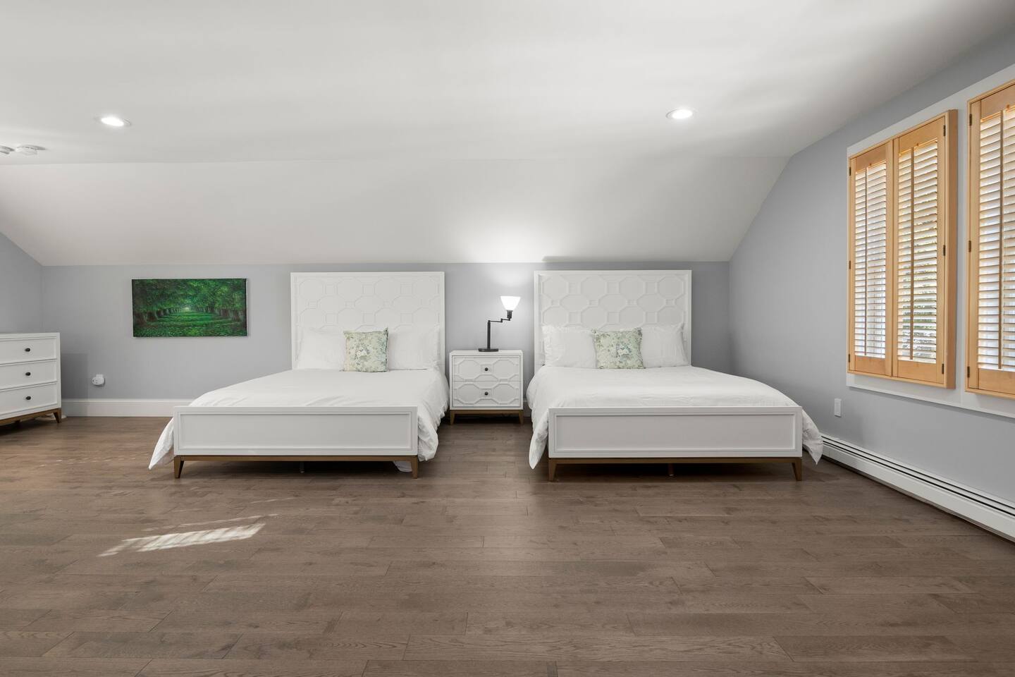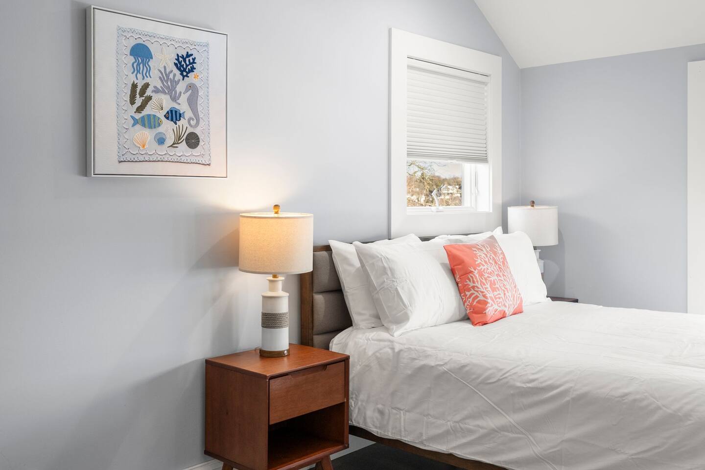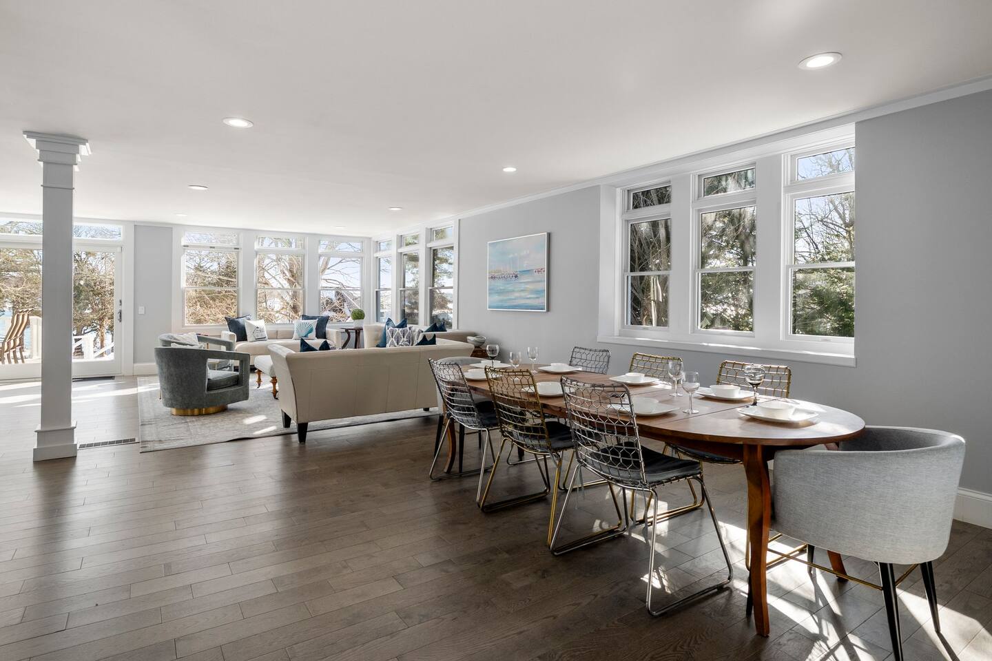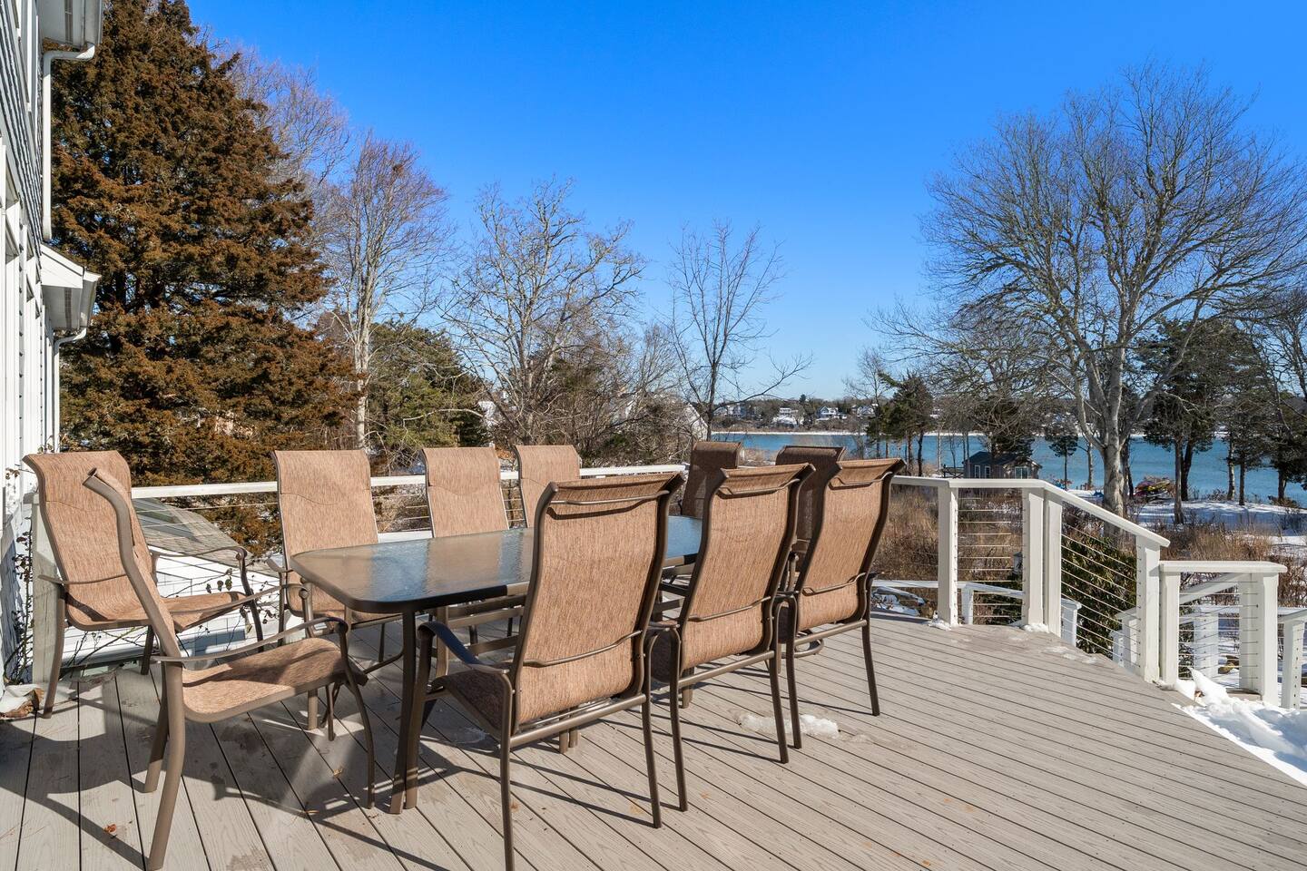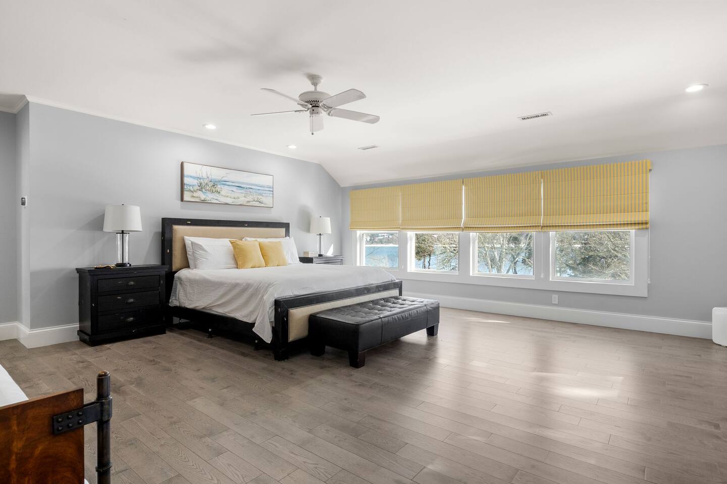The space KEY FEATURES: ☀ Sleeps 12: 4 bedrooms + 1 bonus room (2 kings, 4 queens, 1 full, twin bunk beds) ☀ Bathrooms: 4.5 bathrooms ☀ Waterfront living: Bayfront home with a walking path leading directly to the water ☀ Hot tub on the deck ☀ Expansive deck with lounge chairs, outdoor dining table seating for 10 ☀ Private sauna ☀ Spacious game room with convertible pool/ping pong table ☀ Kayaks, canoes & paddleboards (stored on outdoor stands) ☀ Outdoor shower ☀ Firepit ☀ Bright, open living areas with water views ☀ Indoor dining table with seating for 8 ☀ Fully equipped kitchen with stainless steel appliances & island seating ☀ Spacious outdoor areas for relaxing and gathering ☀ Keyless entry ☀ Washer & Dryer ☀ Boat house: Perfect for storing gear and launching bay adventures ☀ Dedicated worksapce ☆☆ BEDROOMS ☆☆ This spacious waterfront home comfortably accommodates up to 12 guests, all beds are fitted with hotel quality linens. First Floor: - Bedroom #1: Queen bed - Bedroom #2: King bed + water views Second Floor - Bedroom #3 (Primary): King bed + ensuite bathroom + smart TV - Bedroom #4: Queen bed + full bed + twin bunk beds + ensuite bathroom Above the Garage - Bedroom #5 (Bonus Suite): Two queen beds + desk + TV ☆☆ BATHROOMS ☆☆ All full bathrooms are stocked with shampoo, conditioner, body wash, hand soap, lotion, towels, and hair dryers. First Floor - Bathroom #1: Half bathroom (outdoor shower located just outside) - Bathroom #2: Full bathroom with walk in shower Second Floor - Bathroom #3: Full ensuite with walk in shower & tub - Bathroom #4: Full ensuite with walk in shower Basement - Bathroom #5: Full bathroom with walk in shower ☆☆ KITCHEN & LIVING AREAS ☆☆ Kitchen: Large, well-equipped kitchen with stainless steel appliances, island seating for 5, fireplace, coffee bar, TV and ample prep space. Main living & dining area: Open-concept, light-filled space with water views and direct access to the deck, breakfast bar, fireplace, reading room and dinning room with seating for 8. Basement: Secondary living area with sauna, kitchenette, smart TV and a convertible game table (ping pong + pool) — perfect for group fun and spreading out. ☆☆ OUTDOOR SPACE ☆☆ Deck & patio: Hot tub, grill, seating areas, and space for relaxing or entertaining Water access: Private path leading from the yard directly down to the water Boat house & storage shed: Houses kayaks, canoes, paddleboards & water gear Outdoor shower: Enclosed and ideal after beach or water days ☆☆ HOT TUB NOTE ☆☆ Hot tub will be open April - October. Availability can be expanded based on booking requests. ☆☆ HOUSE RULES ☆☆ - No events or parties. - No more than 12 guests max allowed at the home. - No pets. - No smoking. - Quiet hours: 10pm-8am - No food or drink other than water in the living areas or bedrooms. - This is a private family home, please be respectful. ☆☆ PROXIMITY TO BEACHES ☆☆ - Rock Harbor Beach ~2.0 miles - First Encounter Beach ~2.3 miles - Coast Guard Beach ~3.0 miles - Nauset Light Beach ~3.8 miles - Thumpertown Beach ~4.5 miles - White Crest Beach ~9.5 miles ☆☆ PROXIMITY TO ATTRACTIONS ☆☆ - Cape Cod National Seashore Salt Pond Visitor Center ~2.7 miles - Cape Cod Rail Trail Access (Eastham) ~1.5 miles - Nauset Lighthouse ~5.2 miles - Mass Audubon Wellfleet Bay Wildlife Sanctuary ~6.3 miles - Nickerson State Park ~6.1 miles - Orleans Main Street (shops & dining) ~6.5 miles ★★★ Book your stay and enjoy unforgettable bayfront living on the Outer Cape in Eastham ★★★