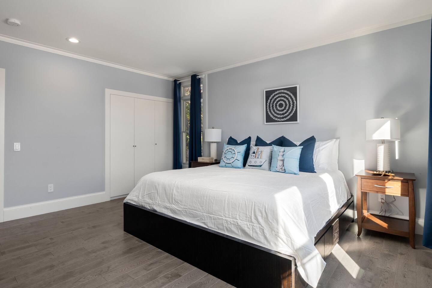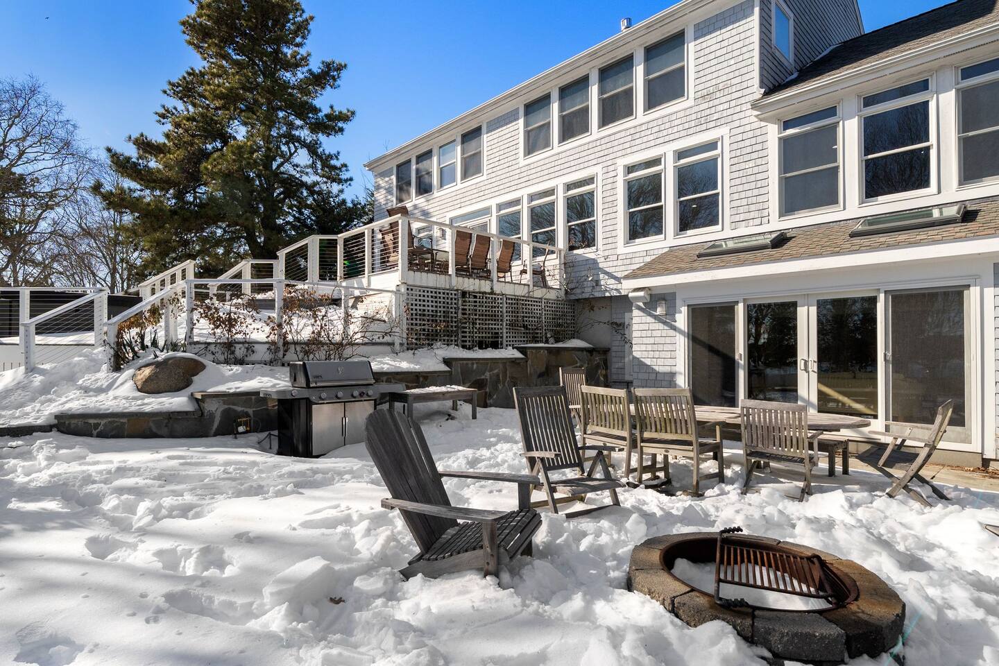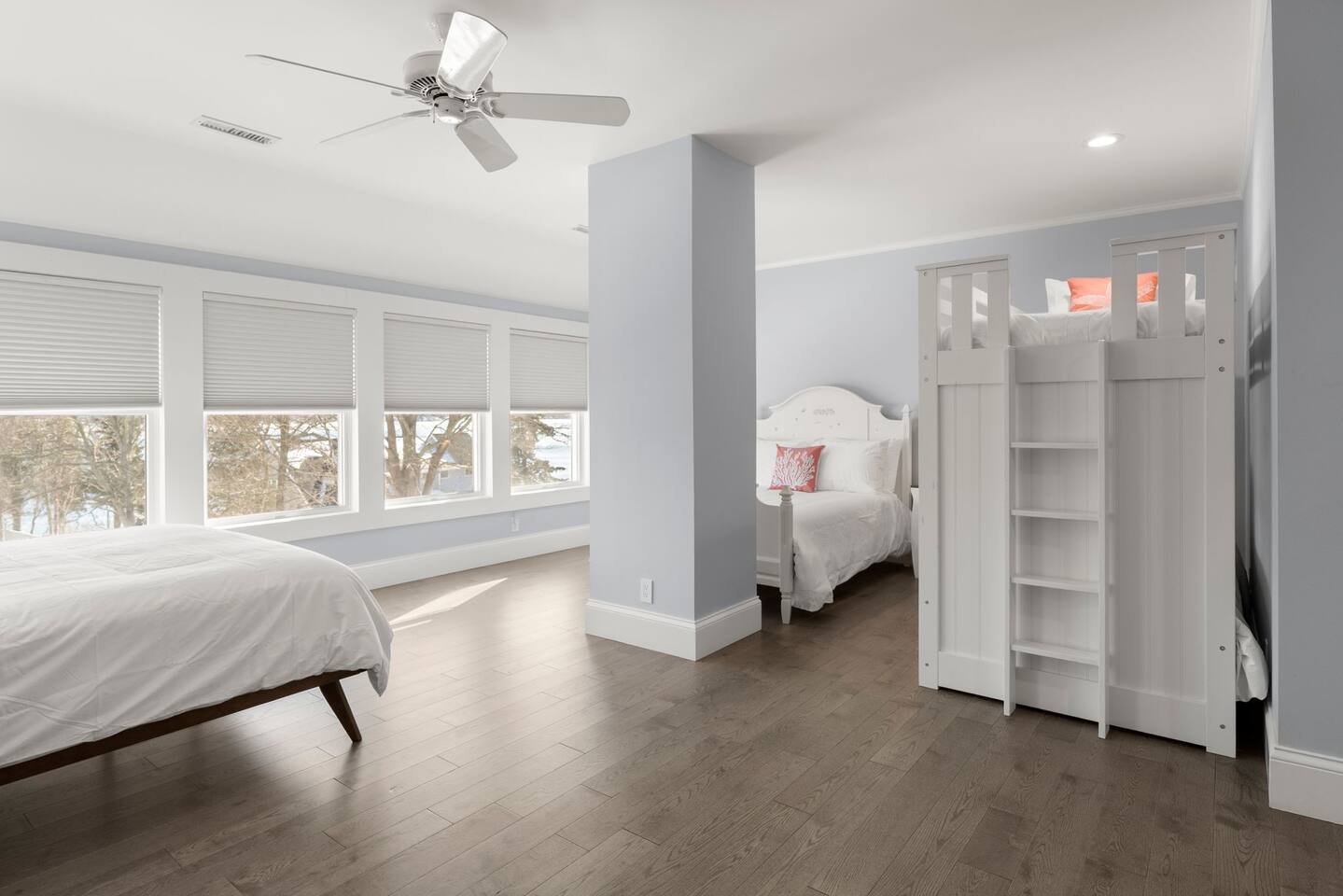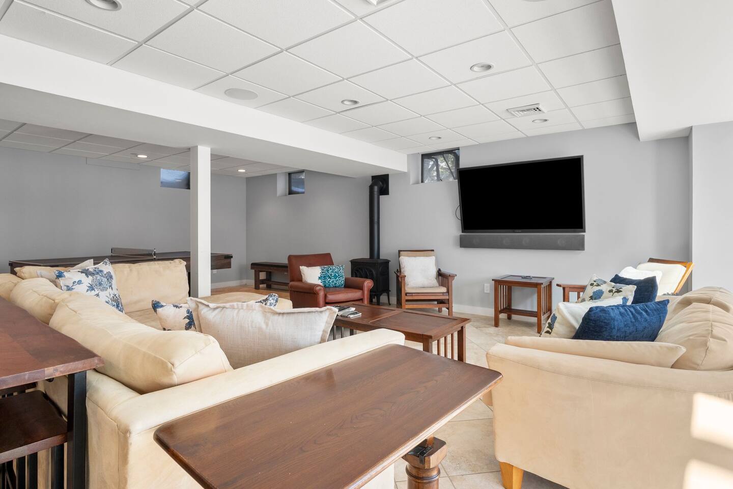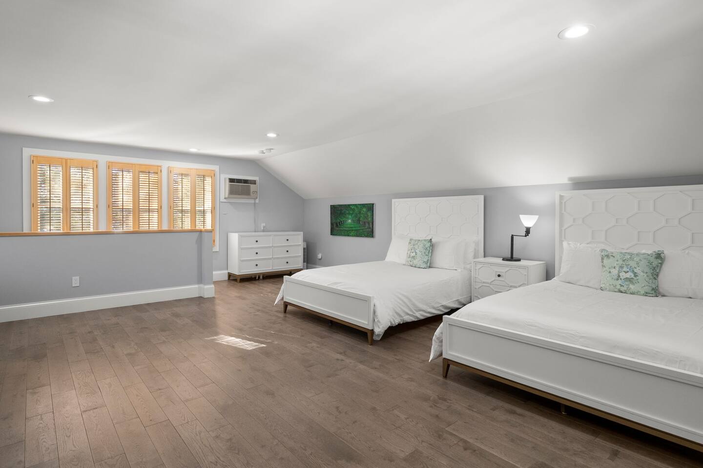 The space KEY FEATURES: ☀ Sleeps 12: 4 bedrooms + 1 bonus room (2 kings, 4 queens, 1 full, twin bunk beds) ☀ Bathrooms: 4.5 bathrooms ☀ Waterfront living: Bayfront home with a walking path leading directly to the water ☀ Hot tub on the deck ☀ Expansive deck with lounge chairs, outdoor dining table seating for 10 ☀ Private sauna ☀ Spacious game room with convertible pool/ping pong table ☀ Kayaks, canoes & paddleboards (stored on outdoor stands) ☀ Outdoor shower ☀ Firepit ☀ Bright, open living areas with water views ☀ Indoor dining table with seating for 8 ☀ Fully equipped kitchen with stainless steel appliances & island seating ☀ Spacious outdoor areas for relaxing and gathering ☀ Keyless entry ☀ Washer & Dryer ☀ Boat house: Perfect for storing gear and launching bay adventures ☀ Dedicated worksapce ☆☆ BEDROOMS ☆☆ This spacious waterfront home comfortably accommodates up to 12 guests, all beds are fitted with hotel quality linens. First Floor: - Bedroom #1: Queen bed - Bedroom #2: King bed + water views Second Floor - Bedroom #3 (Primary): King bed + ensuite bathroom + smart TV - Bedroom #4: Queen bed + full bed + twin bunk beds + ensuite bathroom Above the Garage - Bedroom #5 (Bonus Suite): Two queen beds + desk + TV ☆☆ BATHROOMS ☆☆ All full bathrooms are stocked with shampoo, conditioner, body wash, hand soap, lotion, towels, and hair dryers. First Floor - Bathroom #1: Half bathroom (outdoor shower located just outside) - Bathroom #2: Full bathroom with walk in shower Second Floor - Bathroom #3: Full ensuite with walk in shower & tub - Bathroom #4: Full ensuite with walk in shower Basement - Bathroom #5: Full bathroom with walk in shower ☆☆ KITCHEN & LIVING AREAS ☆☆ Kitchen: Large, well-equipped kitchen with stainless steel appliances, island seating for 5, fireplace, coffee bar, TV and ample prep space. Main living & dining area: Open-concept, light-filled space with water views and direct access to the deck, breakfast bar, fireplace, reading room and dinning room with seating for 8. Basement: Secondary living area with sauna, kitchenette, smart TV and a convertible game table (ping pong + pool) — perfect for group fun and spreading out. ☆☆ OUTDOOR SPACE ☆☆ Deck & patio: Hot tub, grill, seating areas, and space for relaxing or entertaining Water access: Private path leading from the yard directly down to the water Boat house & storage shed: Houses kayaks, canoes, paddleboards & water gear Outdoor shower: Enclosed and ideal after beach or water days ☆☆ HOT TUB NOTE ☆☆ Hot tub will be open April - October. Availability can be expanded based on booking requests. ☆☆ HOUSE RULES ☆☆ - No events or parties. - No more than 12 guests max allowed at the home. - No pets. - No smoking. - Quiet hours: 10pm-8am - No food or drink other than water in the living areas or bedrooms. - This is a private family home, please be respectful. ☆☆ PROXIMITY TO BEACHES ☆☆ - Rock Harbor Beach ~2.0 miles - First Encounter Beach ~2.3 miles - Coast Guard Beach ~3.0 miles - Nauset Light Beach ~3.8 miles - Thumpertown Beach ~4.5 miles - White Crest Beach ~9.5 miles ☆☆ PROXIMITY TO ATTRACTIONS ☆☆ - Cape Cod National Seashore Salt Pond Visitor Center ~2.7 miles - Cape Cod Rail Trail Access (Eastham) ~1.5 miles - Nauset Lighthouse ~5.2 miles - Mass Audubon Wellfleet Bay Wildlife Sanctuary ~6.3 miles - Nickerson State Park ~6.1 miles - Orleans Main Street (shops & dining) ~6.5 miles ★★★ Book your stay and enjoy unforgettable bayfront living on the Outer Cape in Eastham ★★★