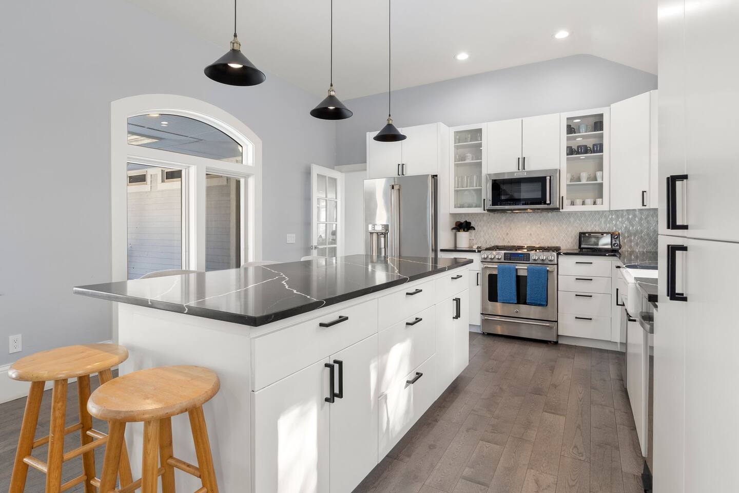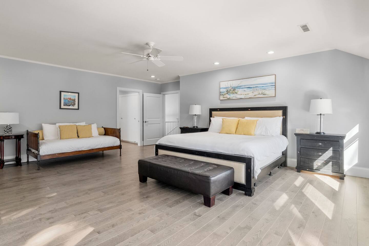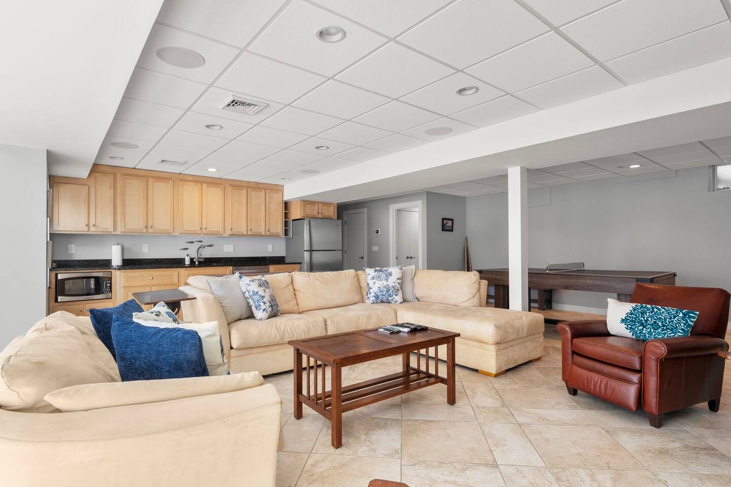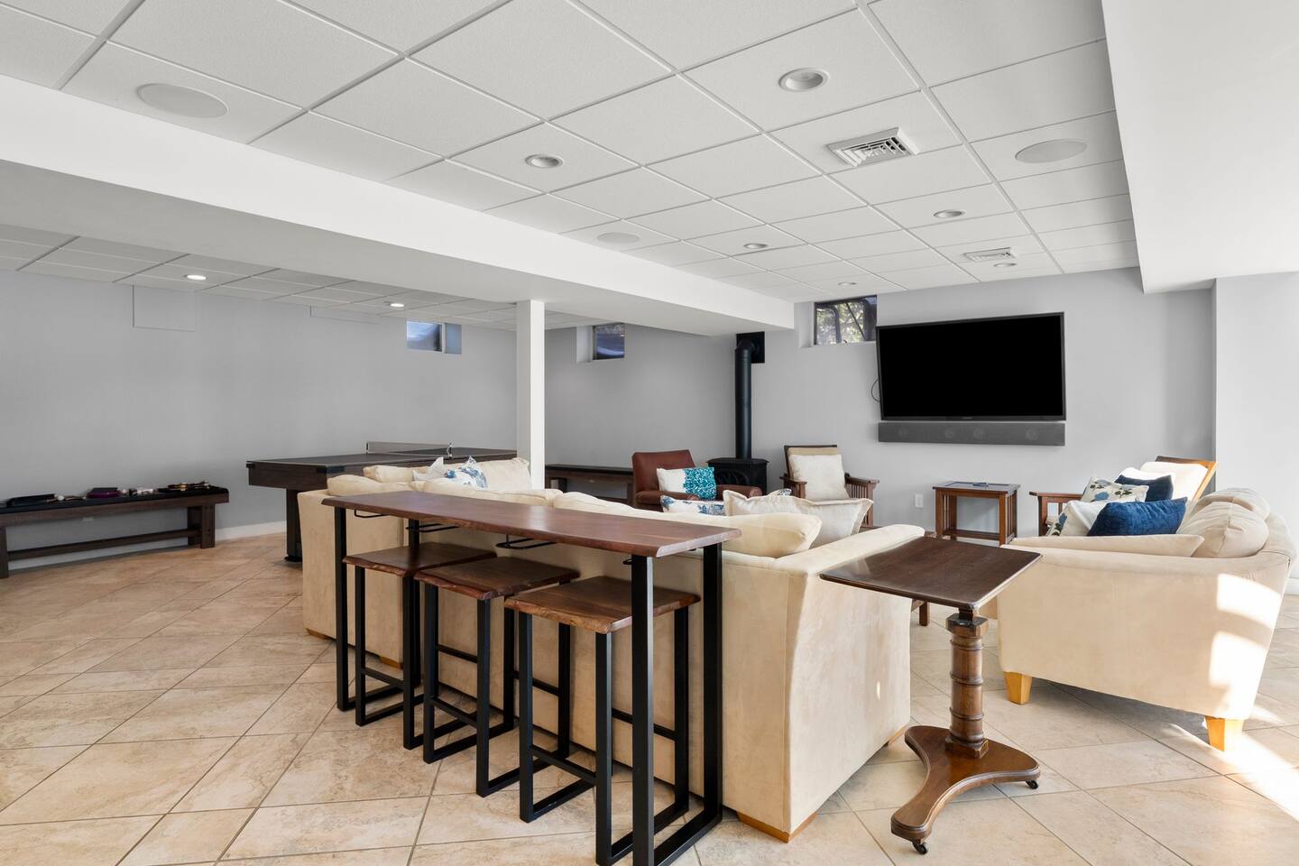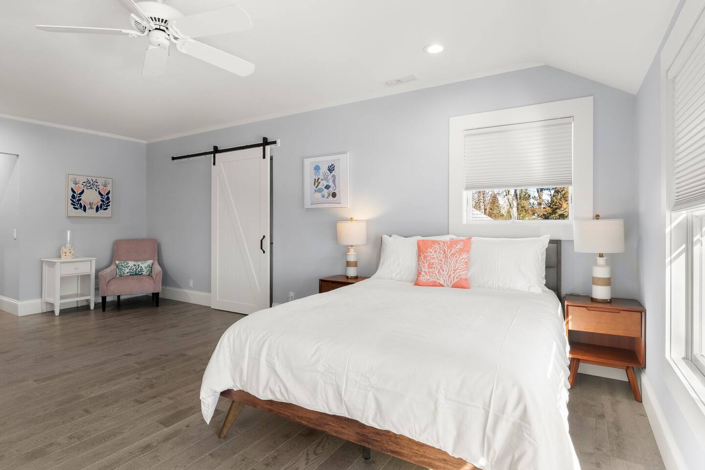 The space KEY FEATURES: ☀ Sleeps 12: 4 bedrooms + 1 bonus room (2 kings, 4 queens, 1 full, twin bunk beds) ☀ Bathrooms: 4.5 bathrooms ☀ Waterfront living: Bayfront home with a walking path leading directly to the water ☀ Hot tub on the deck ☀ Expansive deck with lounge chairs, outdoor dining table seating for 10 ☀ Private sauna ☀ Spacious game room with convertible pool/ping pong table ☀ Kayaks, canoes & paddleboards (stored on outdoor stands) ☀ Outdoor shower ☀ Firepit ☀ Bright, open living areas with water views ☀ Indoor dining table with seating for 8 ☀ Fully equipped kitchen with stainless steel appliances & island seating ☀ Spacious outdoor areas for relaxing and gathering ☀ Keyless entry ☀ Washer & Dryer ☀ Boat house: Perfect for storing gear and launching bay adventures ☀ Dedicated worksapce ☆☆ BEDROOMS ☆☆ This spacious waterfront home comfortably accommodates up to 12 guests, all beds are fitted with hotel quality linens. First Floor: - Bedroom #1: Queen bed - Bedroom #2: King bed + water views Second Floor - Bedroom #3 (Primary): King bed + ensuite bathroom + smart TV - Bedroom #4: Queen bed + full bed + twin bunk beds + ensuite bathroom Above the Garage - Bedroom #5 (Bonus Suite): Two queen beds + desk + TV ☆☆ BATHROOMS ☆☆ All full bathrooms are stocked with shampoo, conditioner, body wash, hand soap, lotion, towels, and hair dryers. First Floor - Bathroom #1: Half bathroom (outdoor shower located just outside) - Bathroom #2: Full bathroom with walk in shower Second Floor - Bathroom #3: Full ensuite with walk in shower & tub - Bathroom #4: Full ensuite with walk in shower Basement - Bathroom #5: Full bathroom with walk in shower ☆☆ KITCHEN & LIVING AREAS ☆☆ Kitchen: Large, well-equipped kitchen with stainless steel appliances, island seating for 5, fireplace, coffee bar, TV and ample prep space. Main living & dining area: Open-concept, light-filled space with water views and direct access to the deck, breakfast bar, fireplace, reading room and dinning room with seating for 8. Basement: Secondary living area with sauna, kitchenette, smart TV and a convertible game table (ping pong + pool) — perfect for group fun and spreading out. ☆☆ OUTDOOR SPACE ☆☆ Deck & patio: Hot tub, grill, seating areas, and space for relaxing or entertaining Water access: Private path leading from the yard directly down to the water Boat house & storage shed: Houses kayaks, canoes, paddleboards & water gear Outdoor shower: Enclosed and ideal after beach or water days ☆☆ HOT TUB NOTE ☆☆ Hot tub will be open April - October. Availability can be expanded based on booking requests. ☆☆ HOUSE RULES ☆☆ - No events or parties. - No more than 12 guests max allowed at the home. - No pets. - No smoking. - Quiet hours: 10pm-8am - No food or drink other than water in the living areas or bedrooms. - This is a private family home, please be respectful. ☆☆ PROXIMITY TO BEACHES ☆☆ - Rock Harbor Beach ~2.0 miles - First Encounter Beach ~2.3 miles - Coast Guard Beach ~3.0 miles - Nauset Light Beach ~3.8 miles - Thumpertown Beach ~4.5 miles - White Crest Beach ~9.5 miles ☆☆ PROXIMITY TO ATTRACTIONS ☆☆ - Cape Cod National Seashore Salt Pond Visitor Center ~2.7 miles - Cape Cod Rail Trail Access (Eastham) ~1.5 miles - Nauset Lighthouse ~5.2 miles - Mass Audubon Wellfleet Bay Wildlife Sanctuary ~6.3 miles - Nickerson State Park ~6.1 miles - Orleans Main Street (shops & dining) ~6.5 miles ★★★ Book your stay and enjoy unforgettable bayfront living on the Outer Cape in Eastham ★★★