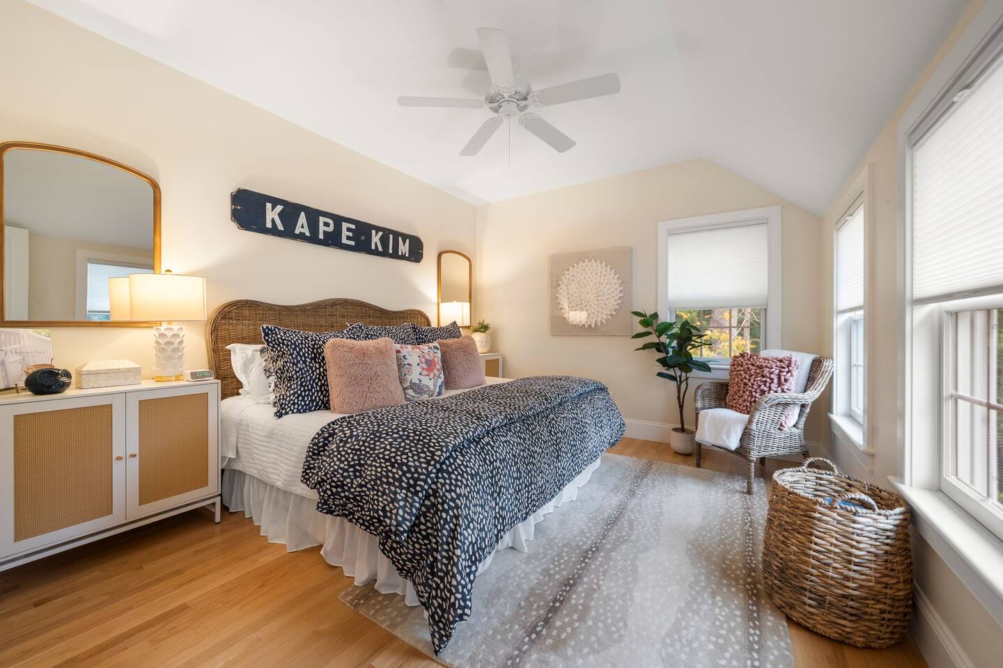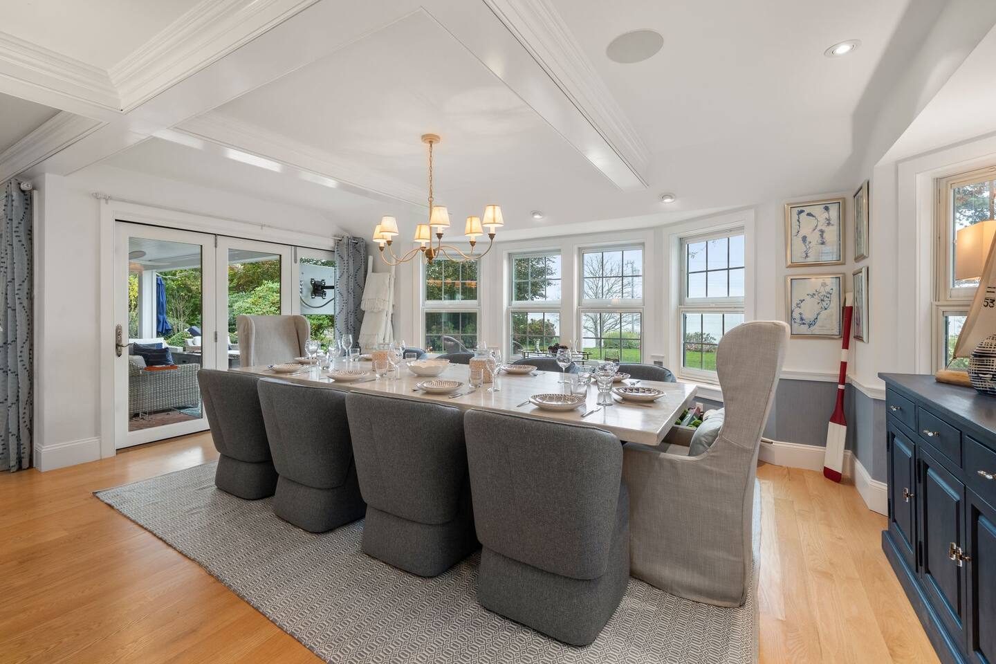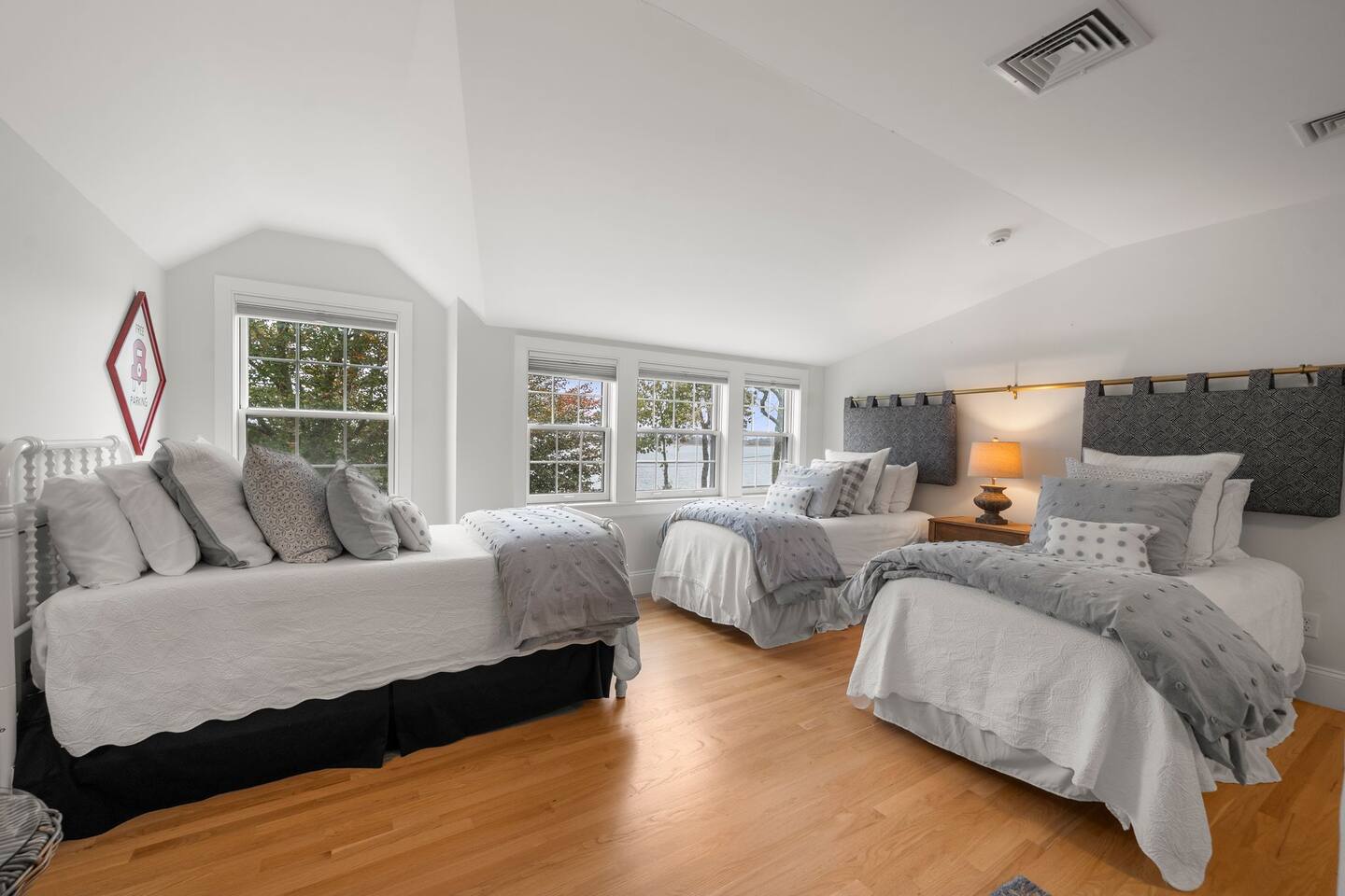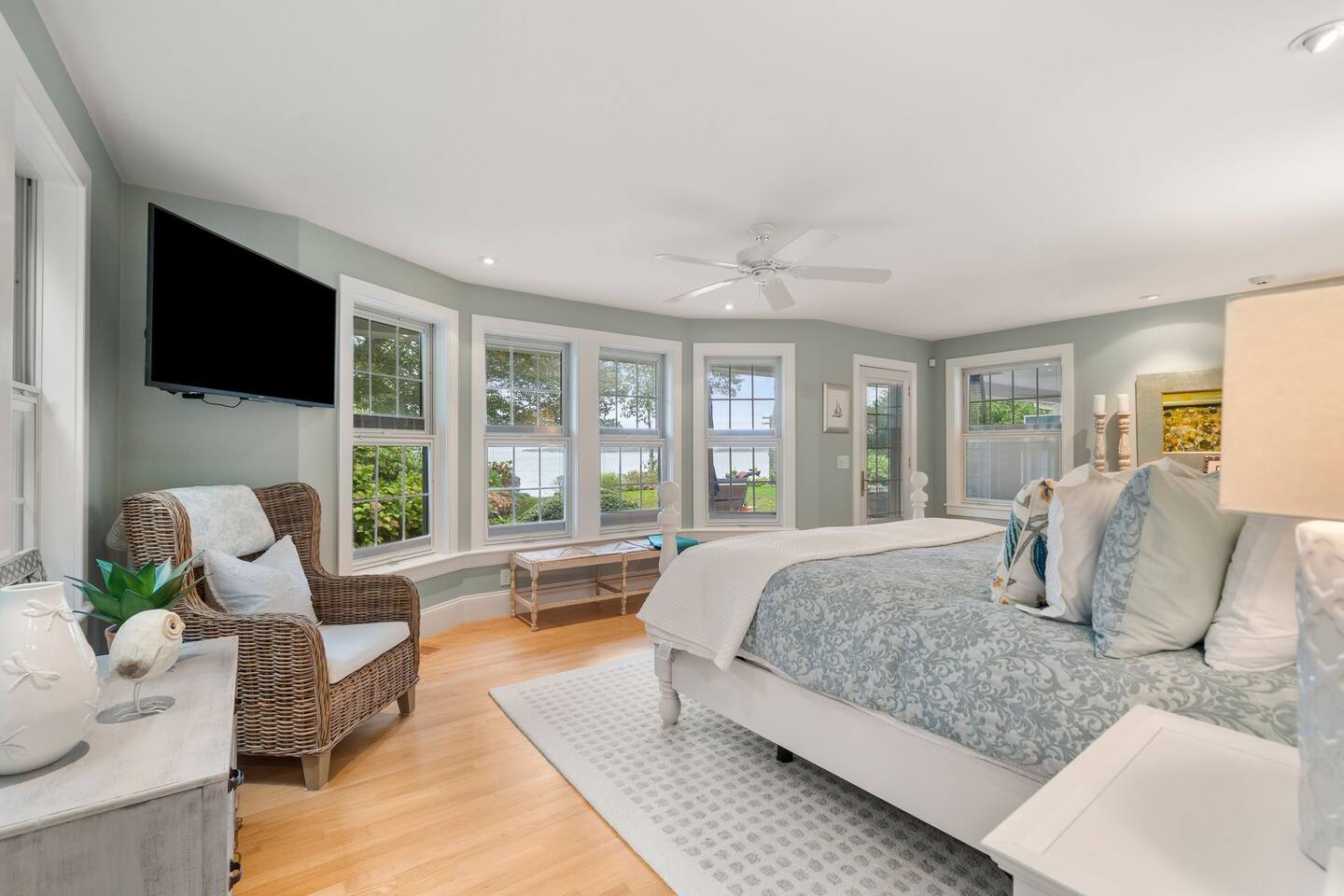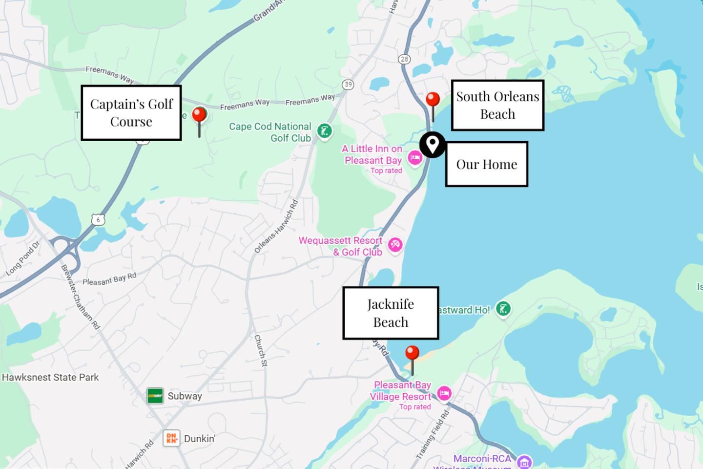 KEY FEATURES ☀ Stunning water views of Pleasant Bay ☀ <1 mile to Wequassett Resort ☀ Sleeps 10 | 7 bedrooms | 10 beds ☀ 4 full + 2 half bathrooms ☀ Private dock ☀ Attached carriage house w/ 2 bedrooms, living room, kitchenette & deck ☀ Fully equipped chef’s kitchen ☀ Indoor & outdoor dining for 10 ☀ Outdoor kitchen w/ grill & pizza oven ☀ Patio w/ firepit, large TV & lounge ☀ Modern living room w/ natural light & fireplace ☀ Office w/ desk, monitor & sea views ☀ 2 washer/dryers | AC | Coffee bar ☀ Large yard w/ corn hole + outdoor shower ☆☆ BEDROOMS ☆☆ Sleeps 10 guests across 7 beautiful rooms: Main House 1st Floor: -Primary: King bed, TV, dresser, ensuite bath, walk-in closet, water views - Bedroom 2: King bed, fireplace, dresser, full mirror, access to full bath 2nd Floor: -Bedroom 3: King bed, closet, water views -Bedroom 4: Twin bed, seating, small closet -Bedroom 5: Four twins (great for kids/group), seating area Carriage House (attached): -Bedroom 6: King bed, dresser, closet -Bedroom 7: Queen bed, closet ☆☆ BATHROOMS ☆☆ 4 full + 2 half baths stocked w/ shampoo, conditioner, body wash, hand soap, blow dryers & towels. Main Floor: -Ensuite full bath (primary) – shower -Full bath – walk-in shower (via hall + bedroom) -Half bath 2nd Floor: -Full bath – shower/tub combo -Half bath Carriage House: -Full bath – walk-in shower ☆☆ KITCHEN & LOUNGE ☆☆ Chef’s kitchen w/ modern appliances, cookware, utensils & Keurig coffee bar. Flows to dining area for 10. Carriage house has kitchenette w/ essentials. Dining: Indoor table seats 10 + carriage house dining table w/ deck & water views. Living Room: Spacious main-level lounge w/ smart TV, piano, fireplace & large windows overlooking Pleasant Bay. Office: 2nd floor w/ desk, monitor & panoramic sea views. Upstairs Lounge: Adjoining the 4-twin room, features seating & natural light – perfect for reading or relaxing. Laundry: Washer/dryer on both floors. ☆☆ OUTSIDE SPACE ☆☆ Private retreat w/ breathtaking water views. Main Patio: Firepit lounge, large outdoor TV, comfy seating, corn hole. Side Terrace: Dining for 10 + outdoor kitchen w/ grill, pizza oven & prep space. Private Dock: Direct Pleasant Bay access. Carriage House Deck: Cozy seating for 2. ☆☆ THINGS TO NOTE ☆☆ Garage is locked/off limits. Family home w/ personal photo wall upstairs – please enjoy this personal touch. ☆☆ NEARBY PLACES IN ORLEANS & CHATHAM ☆☆ -Pleasant Bay – steps away -South Orleans Beach – 2 min -Jackknife Beach – 4 min -Nauset Beach – 10 min -Hardings Beach – 12 min -Lighthouse Beach – 15 min -Skaket Beach – 10 min ☆☆ HOUSE RULES ☆☆ Downtown Orleans shops & cafés | Cape Cod Rail Trail | Rock Harbor Marina | Hot Chocolate Sparrow | The Knack | Mahoney’s | The Beacon Room | Lobster Claw | Chatham Bars Inn | Wequassett Resort | Chatham Village Market | Del Mar | Viera on Main | Impudent Oyster | Sweet Tomatoes Pizza | Bluefins Sushi ☆☆ HOUSE RULES ☆☆ -No events/parties -Max 10 guests -No pets/smoking -Quiet hours: 10pm–8am -Water only in bedrooms/living areas -Private family home – please be respectful ★★★ Book Today & Let Us Take Care Of You In Orleans! ★★★