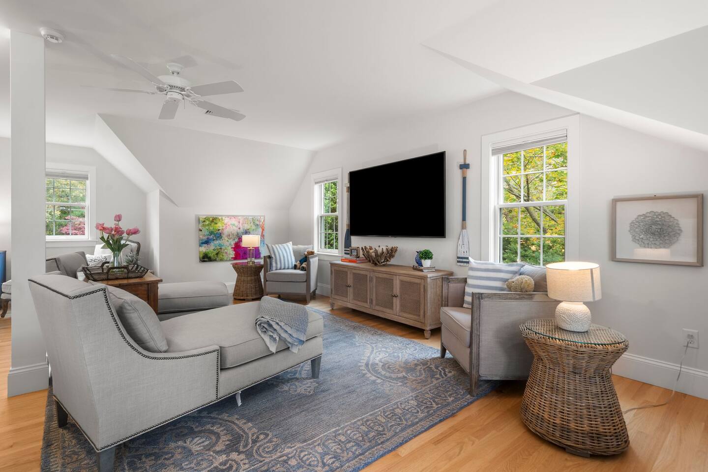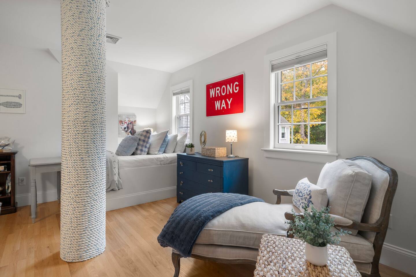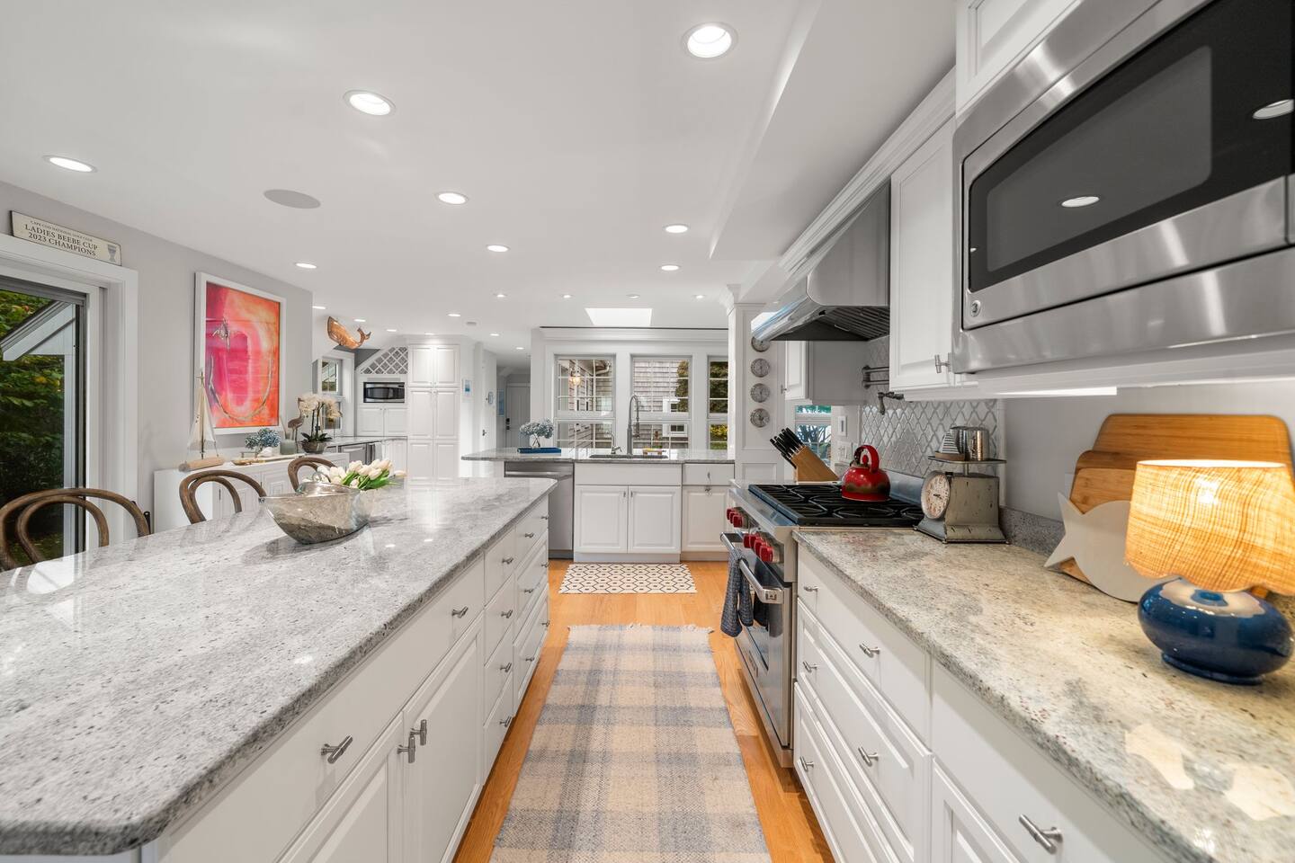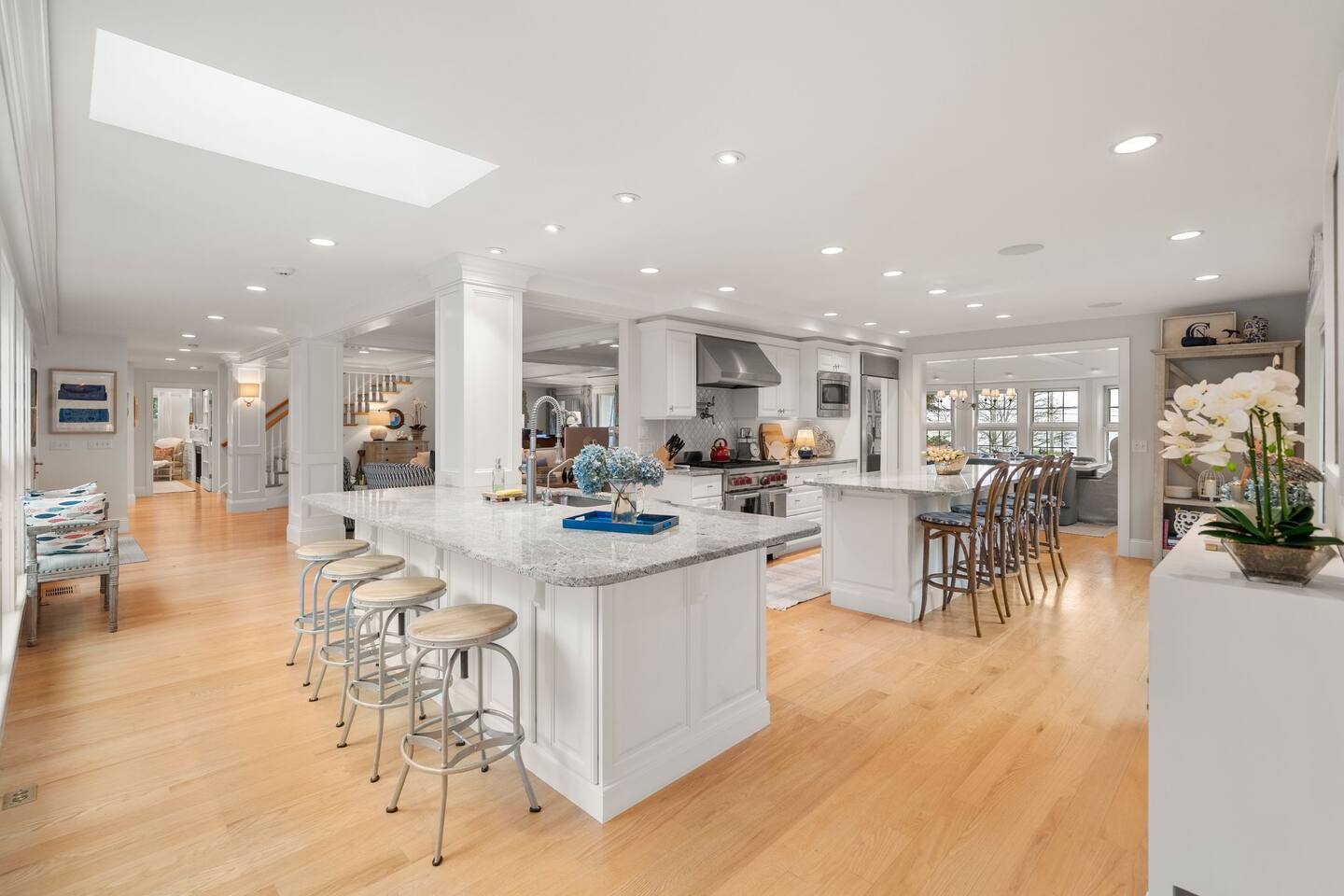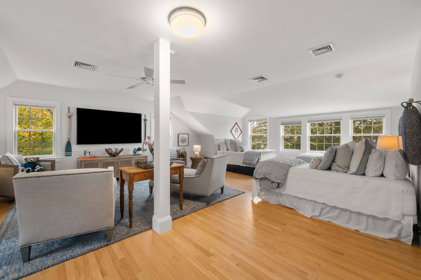KEY FEATURES ☀ Stunning water views of Pleasant Bay ☀ <1 mile to Wequassett Resort ☀ Sleeps 10 | 7 bedrooms | 10 beds ☀ 4 full + 2 half bathrooms ☀ Private dock ☀ Attached carriage house w/ 2 bedrooms, living room, kitchenette & deck ☀ Fully equipped chef’s kitchen ☀ Indoor & outdoor dining for 10 ☀ Outdoor kitchen w/ grill & pizza oven ☀ Patio w/ firepit, large TV & lounge ☀ Modern living room w/ natural light & fireplace ☀ Office w/ desk, monitor & sea views ☀ 2 washer/dryers | AC | Coffee bar ☀ Large yard w/ corn hole + outdoor shower ☆☆ BEDROOMS ☆☆ Sleeps 10 guests across 7 beautiful rooms: Main House 1st Floor: -Primary: King bed, TV, dresser, ensuite bath, walk-in closet, water views - Bedroom 2: King bed, fireplace, dresser, full mirror, access to full bath 2nd Floor: -Bedroom 3: King bed, closet, water views -Bedroom 4: Twin bed, seating, small closet -Bedroom 5: Four twins (great for kids/group), seating area Carriage House (attached): -Bedroom 6: King bed, dresser, closet -Bedroom 7: Queen bed, closet ☆☆ BATHROOMS ☆☆ 4 full + 2 half baths stocked w/ shampoo, conditioner, body wash, hand soap, blow dryers & towels. Main Floor: -Ensuite full bath (primary) – shower -Full bath – walk-in shower (via hall + bedroom) -Half bath 2nd Floor: -Full bath – shower/tub combo -Half bath Carriage House: -Full bath – walk-in shower ☆☆ KITCHEN & LOUNGE ☆☆ Chef’s kitchen w/ modern appliances, cookware, utensils & Keurig coffee bar. Flows to dining area for 10. Carriage house has kitchenette w/ essentials. Dining: Indoor table seats 10 + carriage house dining table w/ deck & water views. Living Room: Spacious main-level lounge w/ smart TV, piano, fireplace & large windows overlooking Pleasant Bay. Office: 2nd floor w/ desk, monitor & panoramic sea views. Upstairs Lounge: Adjoining the 4-twin room, features seating & natural light – perfect for reading or relaxing. Laundry: Washer/dryer on both floors. ☆☆ OUTSIDE SPACE ☆☆ Private retreat w/ breathtaking water views. Main Patio: Firepit lounge, large outdoor TV, comfy seating, corn hole. Side Terrace: Dining for 10 + outdoor kitchen w/ grill, pizza oven & prep space. Private Dock: Direct Pleasant Bay access. Carriage House Deck: Cozy seating for 2. ☆☆ THINGS TO NOTE ☆☆ Garage is locked/off limits. Family home w/ personal photo wall upstairs – please enjoy this personal touch. ☆☆ NEARBY PLACES IN ORLEANS & CHATHAM ☆☆ -Pleasant Bay – steps away -South Orleans Beach – 2 min -Jackknife Beach – 4 min -Nauset Beach – 10 min -Hardings Beach – 12 min -Lighthouse Beach – 15 min -Skaket Beach – 10 min ☆☆ HOUSE RULES ☆☆ Downtown Orleans shops & cafés | Cape Cod Rail Trail | Rock Harbor Marina | Hot Chocolate Sparrow | The Knack | Mahoney’s | The Beacon Room | Lobster Claw | Chatham Bars Inn | Wequassett Resort | Chatham Village Market | Del Mar | Viera on Main | Impudent Oyster | Sweet Tomatoes Pizza | Bluefins Sushi ☆☆ HOUSE RULES ☆☆ -No events/parties -Max 10 guests -No pets/smoking -Quiet hours: 10pm–8am -Water only in bedrooms/living areas -Private family home – please be respectful ★★★ Book Today & Let Us Take Care Of You In Orleans! ★★★